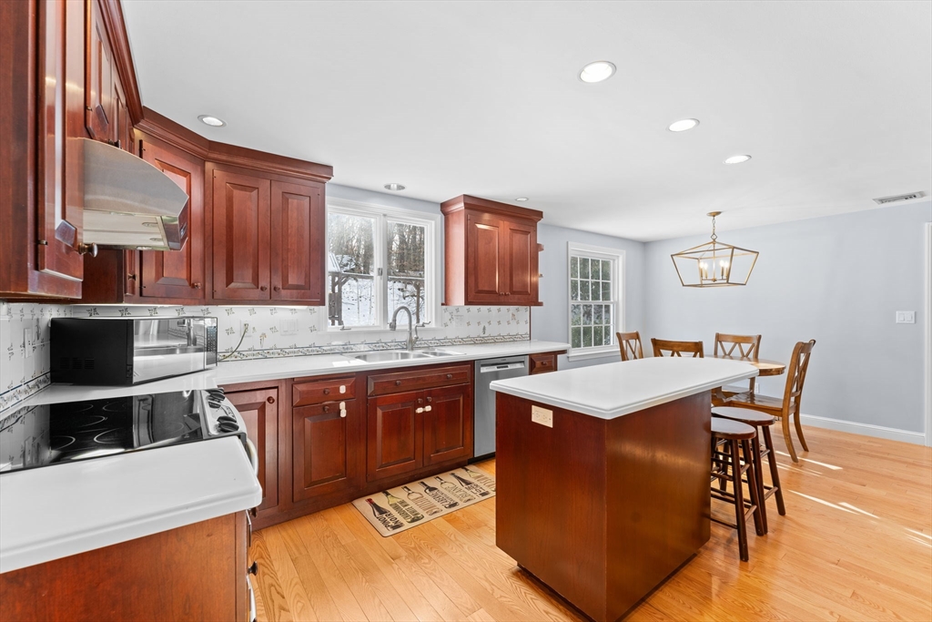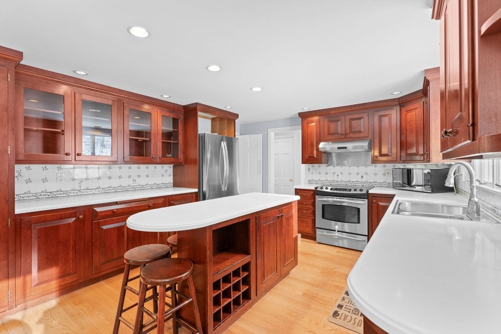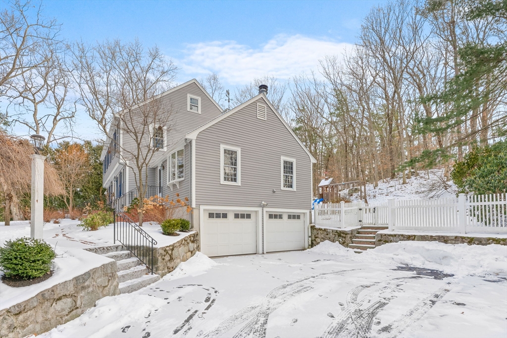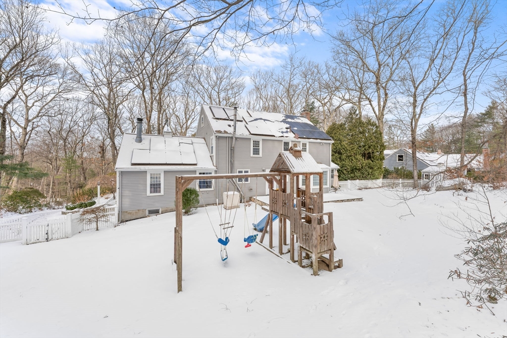 Flexible-term rental opportunity. This well-maintained Colonial offers generous living space on a private 1-acre lot abutting conservation land. The main level features a bright kitchen with modern appliances, a dedicated home office, formal living and dining rooms, and a spacious three-season porch with direct access to the fenced backyard and patio. Hardwood floors and three fireplaces add warmth and character throughout. Upstairs includes a primary suite with private bath and three additional bedrooms. The finished lower level provides versatile bonus space suitable for a variety of needs. Energy-efficient solar panels help subsidize the electric bill, offering added value for tenants. Conveniently located near commuter routes, local trails, and within the Dover-Sherborn public school district.
