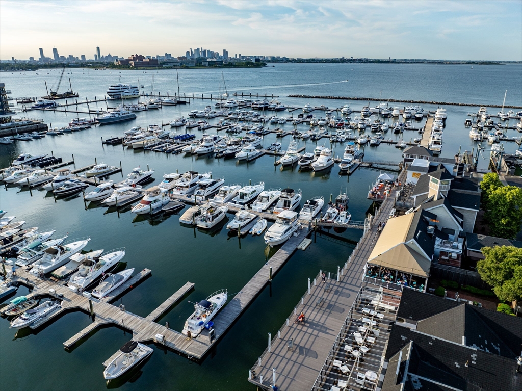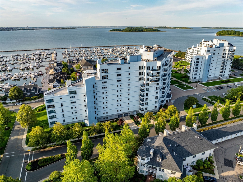 Welcome to your coastal paradise! Rare opportunity to own 2BR/BA at prestigious Marina Point Condos at affordable price! This waterfront home offers spectacular views of the Boston Skyline, centered in the favored West Bldg, on the 5th fl, steps from the boardwalk w/restaurants, shops & more! At just $999,900, it is an exceptional value for a 2BR/2BA while the only others now available are above 1 million w/ significantly higher condo fees & taxes. The enclosed balcony provides privacy & access from the LR & primary BR. Engineered HW flrs in a hickory finish throughout. The guest BR, currently used as an office, can accommodate an entire BR set. The beautifully remodeled guest bath is Carrara marble & has a full-size tub/shower. The primary suite features a huge jetted tub, double vanity w/ Crema Marfil marble. Awesome kit w/updated Samsung SS app, quartz countertops & high end wood cabinets. 2 deeded garage spaces. Free shuttle to N Quincy T & small fee for seasonal ferry to Boston!