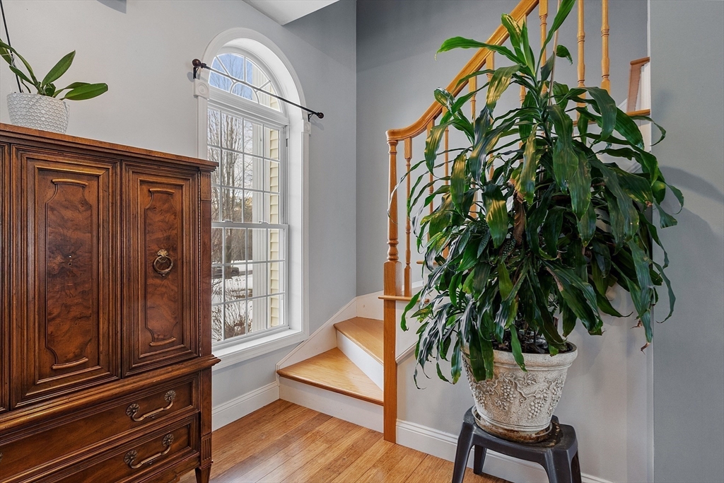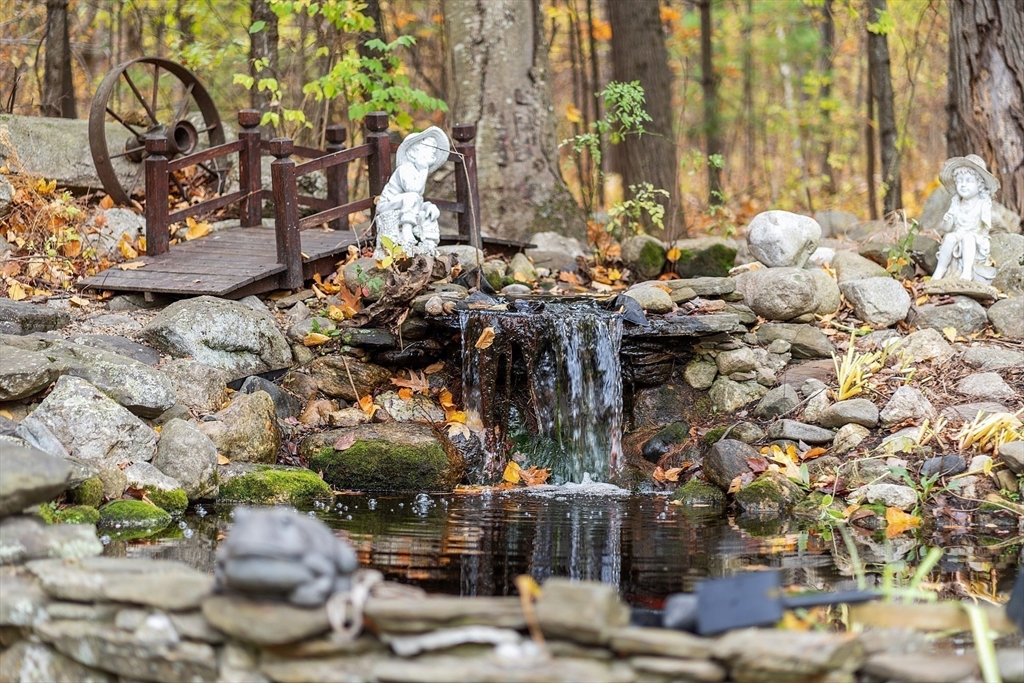 Welcome to this impressive 4-bedroom Colonial located in a desirable neighborhood on a quiet dead-end street. The expansive kitchen features upgraded cabinets and countertops, double ovens, pantry, and oversized island, opening to a cathedral family room with hardwood floors and a cozy wood stove. Sliders lead to a large deck overlooking a private backyard with mature plantings, a tranquil waterfall, and oversized shed. The first floor offers laundry and a flexible office or guest bedroom. Upstairs includes a spacious primary suite with jacuzzi tub and double vanity, plus three additional generously sized bedrooms. A sunny, partially finished walk-up attic and partially finished basement provide excellent bonus space for a gym, media room, or home office. A wonderful blend of space, comfort, and location.