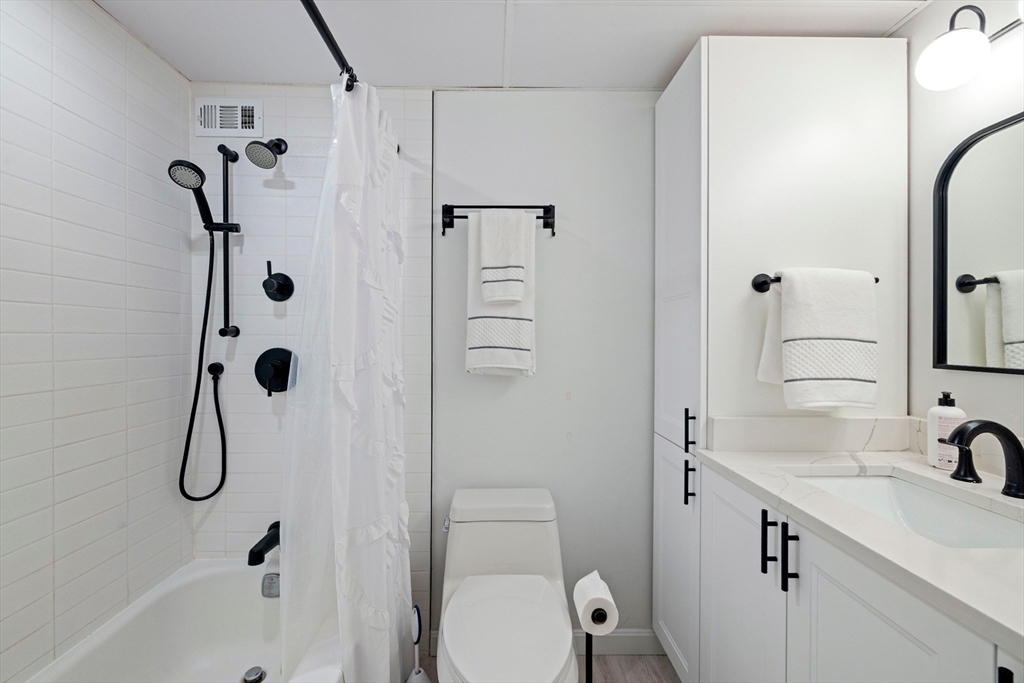Second floor recently renovated two-bedroom two-full-bath condo in an elevator building located on the West Roxbury/Chestnut Hill line at Broadlawn Commons. An open floor plan seamlessly combines dining and living areas with a balcony, creating the perfect space for entertaining. The generously-sized bedrooms include a spacious master suite with an en-suite bath, walk-in closet, and plenty of natural light. Additional features include ample in-unit storage, plus deeded basement storage and two dedicated parking spaces. Enjoy the convenience of living in a professionally managed association with a live-in superintendent. The association fee covers heat, hot water, and access to fantastic amenities, including a renovated pool deck, on-site laundry rooms on every floor, guest parking, and pet-friendly policies.