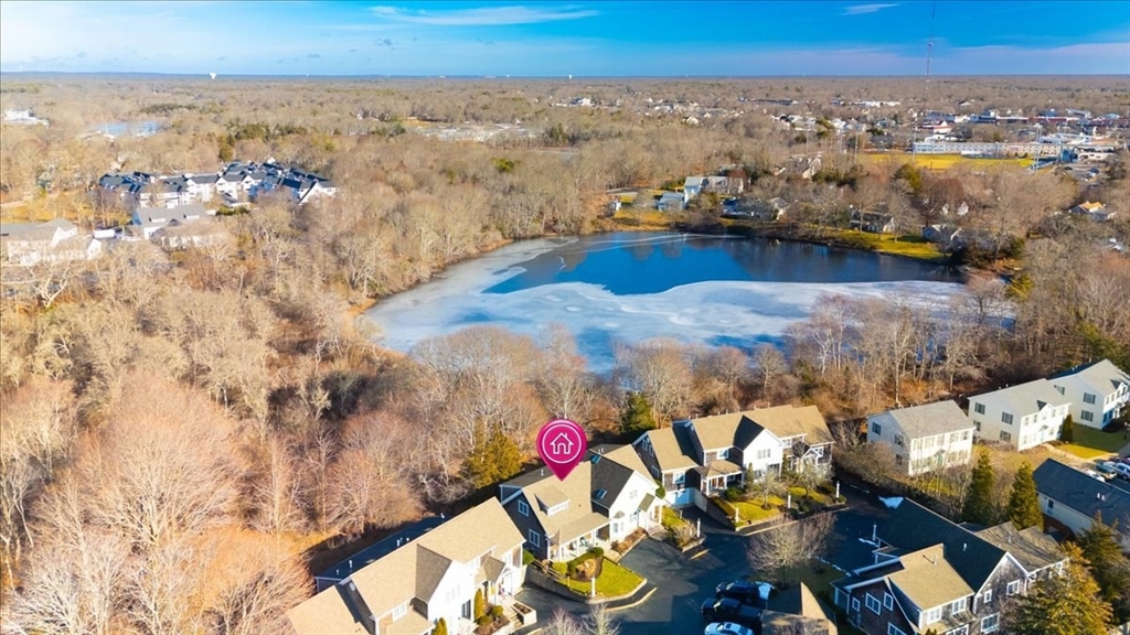 Some homes simply feel right, and this townhouse-style condo overlooking Nye's Pond is one of them. Set in the heart of Falmouth Village, it offers a relaxed pondside lifestyle with shops, dining, and village favorites just minutes away. Residents enjoy access to the pond for kayaking and paddleboarding, making everyday life feel a little more like vacation. Inside, high ceilings and beautiful natural light create a warm, open atmosphere. The first-floor primary suite includes a private bath and walk-in closet, providing the ease of main-level living. Upstairs, the layout opens to a comfortable family room, two additional bedrooms, a versatile bonus room perfect for an office or guest space, and a second full bath. A cozy gas fireplace anchors the living area, while sliders lead to a private deck and patio, ideal for morning coffee, evening unwinding, or quiet weekends at home. Village location, pond access, flexible living space, make this is a rare opportunity.