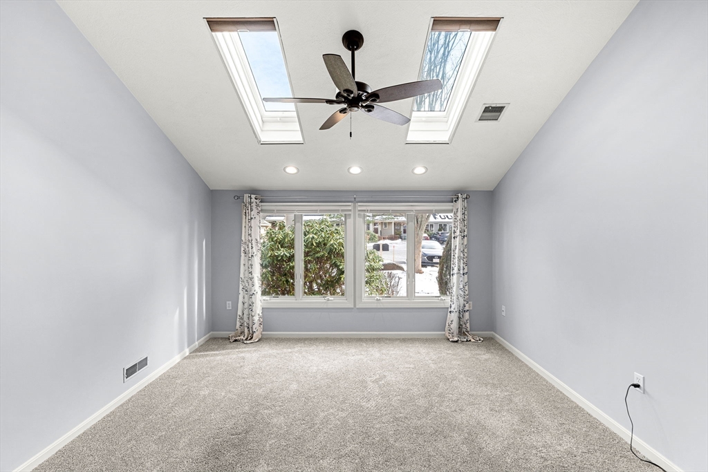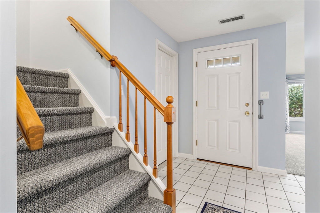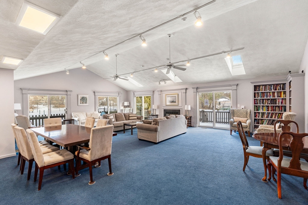 Exceptional condition offering at Haverhill's well-known VILLAGE AT BRICKETT HILL ! This is your move-in ready home with recently installed carpeting and interior paint. Bright, sunny, skylit living room as you enter with gas fireplace for those chilly winter nights. Large pantry/kitchen area with refrigerator, gas stove/oven, garbage disposal, dishwasher included. Generous cabinet space and countertop area. Large family/dining room is hardwood floored and has slider to outside patio and wooded backyard. Utility closet, walk in closet and half bath. Two bedrooms up carpeted stairs with master bath and full bath. Wall to wall carpeted bedrooms and tiled baths. Carpeted stairs to finished attic, generous sized would make ideal craft or hobby area or use as additional storage. Unit is in turnkey condition located within short drive to Interstate 495 as well as downtown Haverhill restaurant district and a quick hop to NH shopping including markets, restaurants and home improvement. stores.
