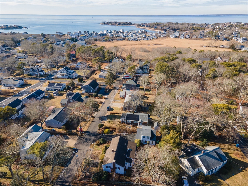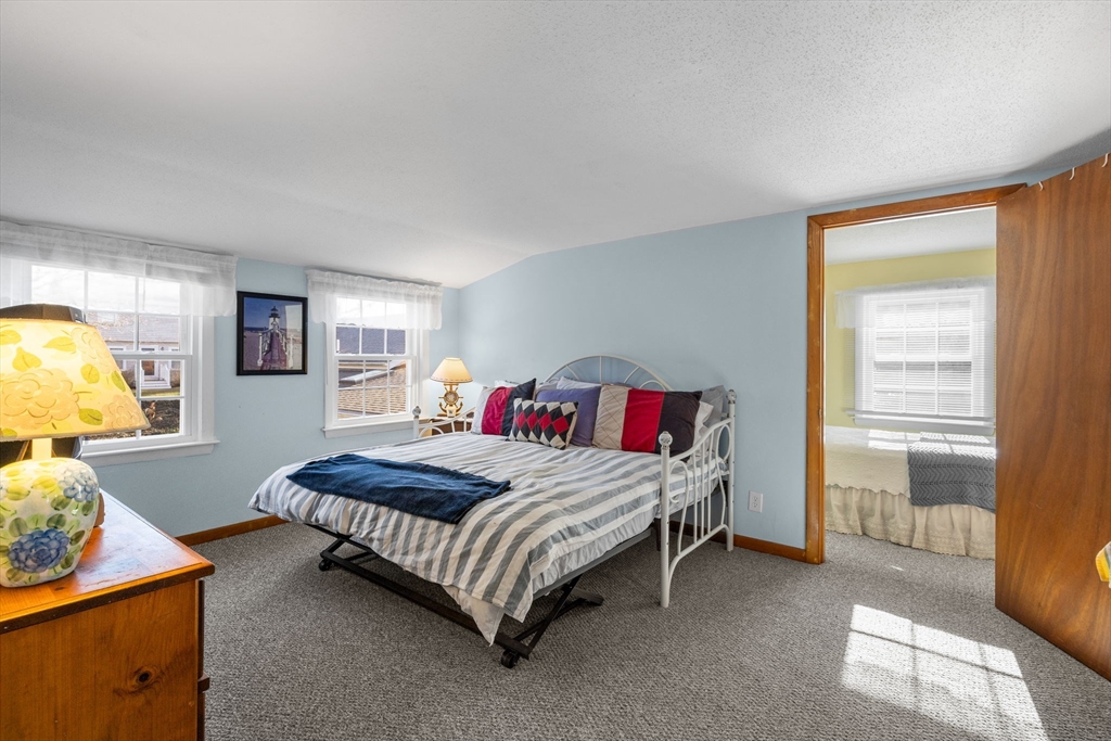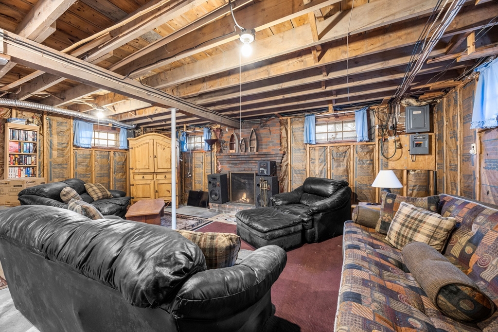 New Silver Beach! Here's a fabulous opportunity to create lasting family memories. This beautiful home offers 6 rooms, including 3 bedrooms, 1 full bath, and 2 half baths. Features include a spacious living room, dining room, and eat-in kitchen, plus a huge three-season porch (see floor plan in photos). The basement has studded exterior walls and a fireplace, just waiting to be finished. Gas heat and central air conditioning provide year-round comfort. The oversized corner lot is larger than most in the area and includes a large two-car garage with three finished rooms above, NOTE, these are NOT bedroom and there is no heat over the garage.. Surrounded by a lovely stone wall, this property also has the added bonus of being OUT of the flood zone. Don't wait—this exceptional home is sure to attract plenty of attention!