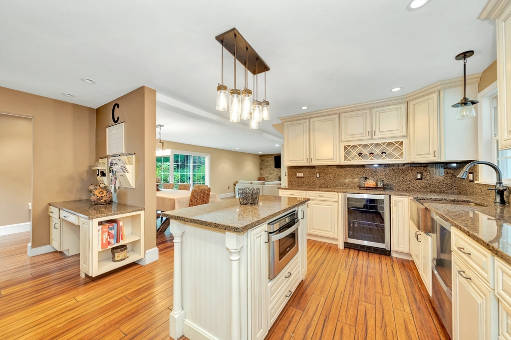 Tucked away on a quiet cul-de-sac, this hidden gem offers rare privacy & a welcoming neighborhood vibe - think flat streets perfect for bike rides or evening strolls. Inside, value meets lifestyle w/an open-concept main level centered around a beautifully reimagined kitchen (approx. 10 yrs ago). Highlights include a copper sink, prep island, pot filler, wine fridge, ice maker, granite counters, high-end appliances, and a bonus mudroom nook and desk space. The dining and living rooms (with faux fireplace) overlook the backyard through the rear wall of sliding glass doors. A half bath & versatile den/office/playroom complete the main level. Upstairs, four bedrooms feature generous closets & a nicely updated full bath with walk-in tiled shower. While the interior is move-in ready, it's being sold "AS-IS" & a little exterior TLC will go a long way - the farmer's porch is adorable and the yard has incredible potential, especially with completion of the partial waterfall feature!