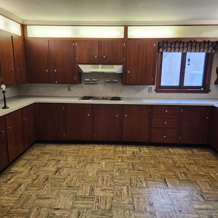 CUSTOM Brick Ranch featuring spacious eat-in kitchen with built in hutch and abundant cabinets! Oversized Living/Dining Room with large bay window and brick fireplace! Master bedroom consists of double closet, wall to wall carpet, crown molding and a full ceramic tile bath! 2nd spacious bedroom with double closet, crown molding all carpeted! Additional bath with walk in ceramic tile shower and linen closet! Heated sunroom! Breezeway off of the 2 car attached garage! Huge basement with separate heated craft or hobby room with 2 walk in cedar closets! Laundry in basement with wash sink! 3 zone oil radiant heat in ceilings! Town water and sewer! Conveniently located to shopping, schools and local parks! Easy access to I-90 I-84 and Sturbridge Village!