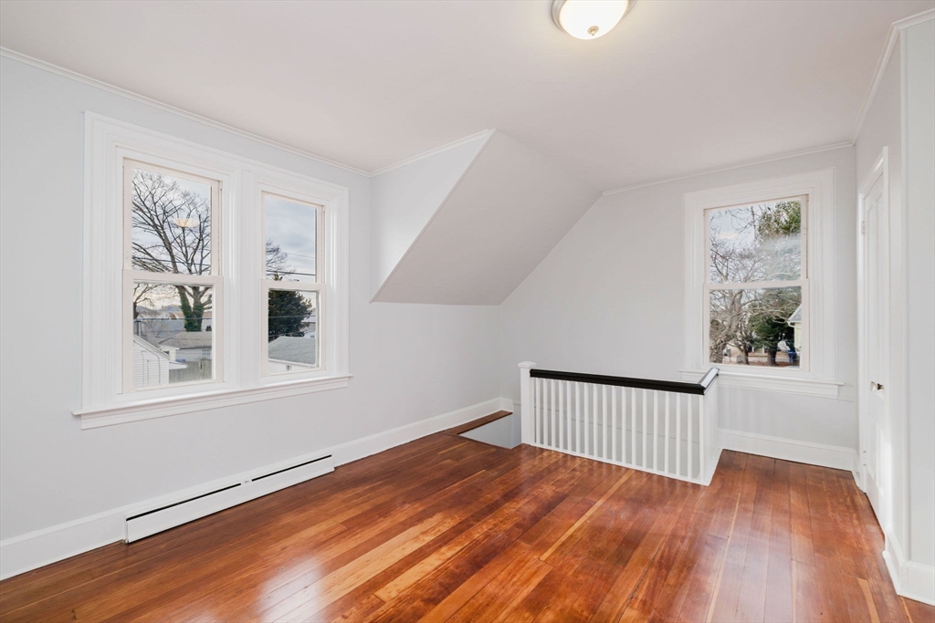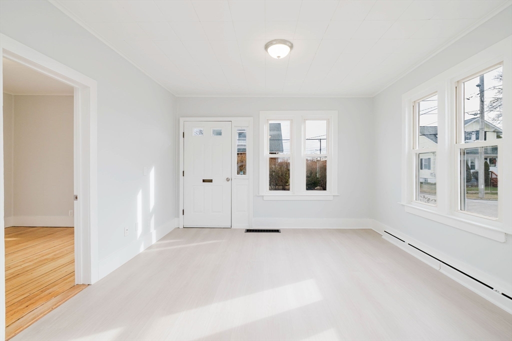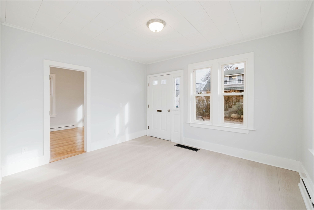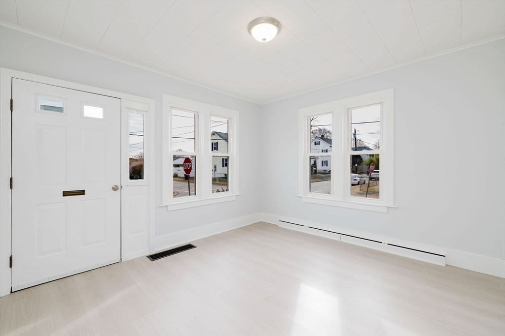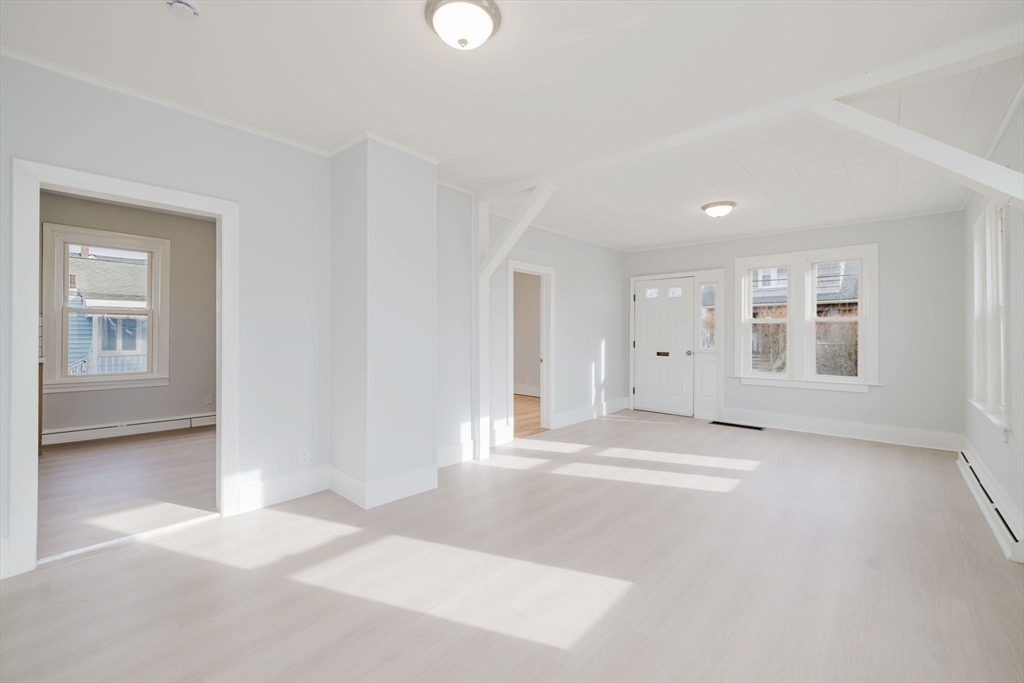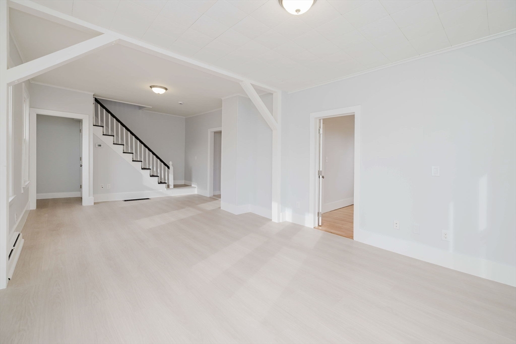Older Colonial-style home situated on a cozy corner lot in the Darlington neighborhood. This beautifully renovated property features a brand-new kitchen with updated cabinetry, quartz countertops, tile backsplash, stainless steel appliances, and durable vinyl plank flooring throughout the first floor. The open living and dining area creates a welcoming space for everyday living and entertaining, complemented by a convenient first-floor bedroom and half bath. Upstairs offers a generous full bath, two additional bedrooms, and a versatile family room or office area. Abundant closet space provides plenty of storage. The clean basement includes a bulkhead, newer heating system, and gas hot water heater. Ideally located close to the train station and major highways for easy commuting.