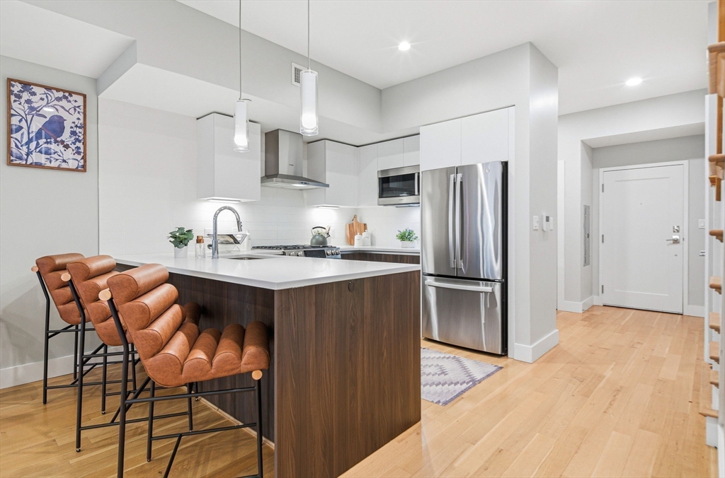 OH 1/15 TH 4-6 & SAT 1-3 Gorgeous luxury two-floor, townhouse-style condo located on the Cambridge/Somerville city line within BEACON260, a boutique elevator building along Somerville’s Beacon Bike Corridor. This expansive 2+ bedroom and 2.5 bath residence offers a functional, light-filled layout. Modern kitchen, oversized living and dining areas, reading/study nook, and a half bath—ideal for everyday living and entertaining. High-end finishes include custom Italian cabinetry, white quartz countertops, Bosch stainless steel appliances, Porcelanosa tile from Spain, hardwood flooring throughout, and two-zone NEST thermostats. The upper level offers primary suite with en-suite bath, walk-in closets, and oversized windows, plus a large second bedroom and bonus office or flex space with full bath. Cozy deck for patio garden, in-unit washer and dryer, and one deeded heated garage space. Exceptionally located just steps from grocery store, less than 10 min. walk to Harvard, shops &restaurants