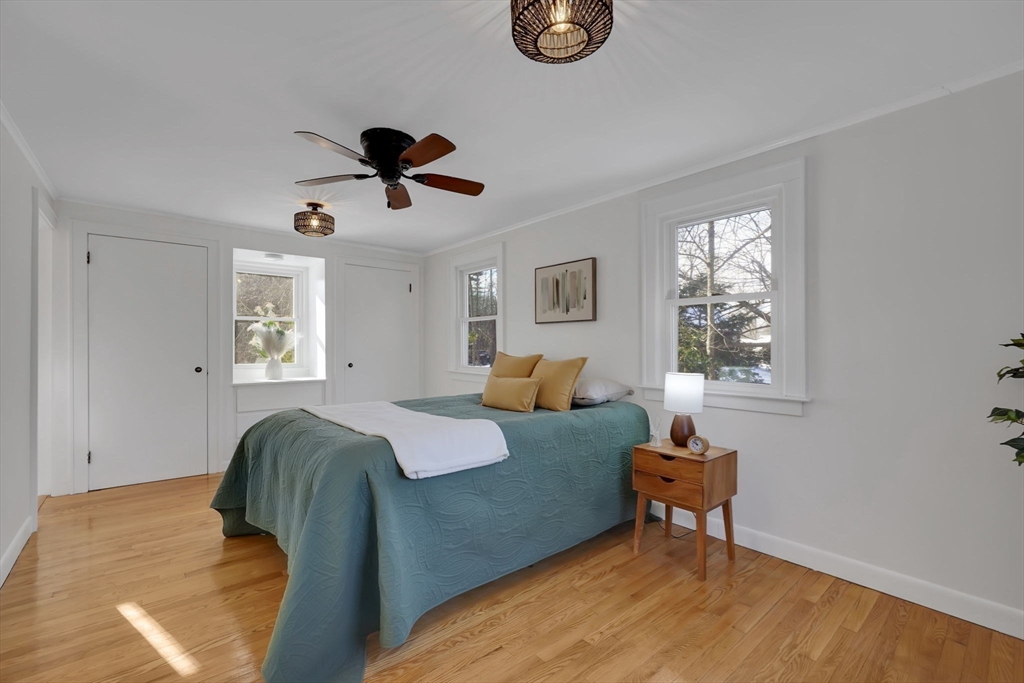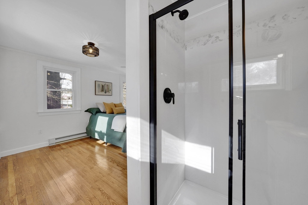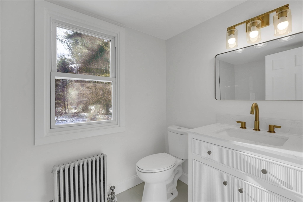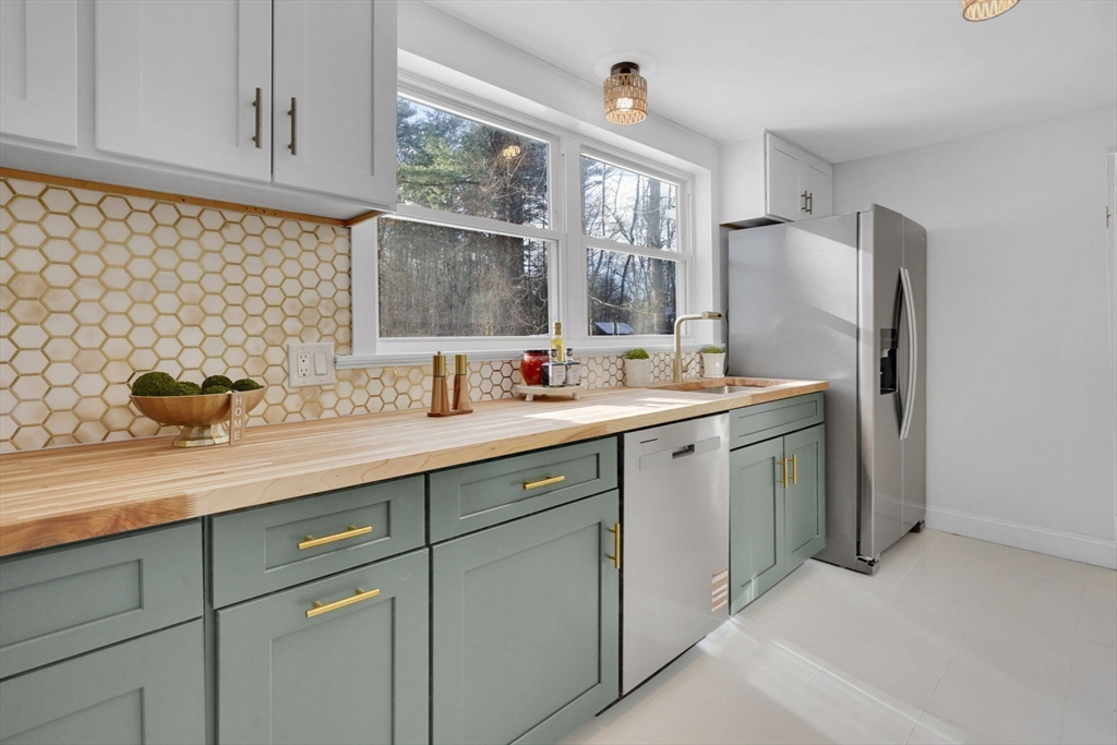 Welcome to this beautifully renovated 4-bedroom, 2.5-bath Colonial set on a 17K sq ft lot in a prime South Hadley location. This move-in-ready home features all new finishes, a brand-new driveway, new windows, new siding, and a new hot water heater. The main level offers a first-floor primary suite with a private ensuite bath and tiled shower, a sun-filled living room with a wood burning fireplace and built-ins, and a three-season sunroom perfect for relaxing or entertaining. The warm, inviting kitchen features sage cabinetry, butcher block countertops, gold accents, and brand-new stainless appliances, and opens to a dedicated dining room ideal for gatherings. Upstairs includes three generously sized bedrooms with large closets and a fully renovated full bath.Conveniently located just minutes to Mount Holyoke College, The Village Commons, dining, shopping, and major routes, this home offers modern updates, flexible living space, and an unbeatable location. Nothing to do but move in!