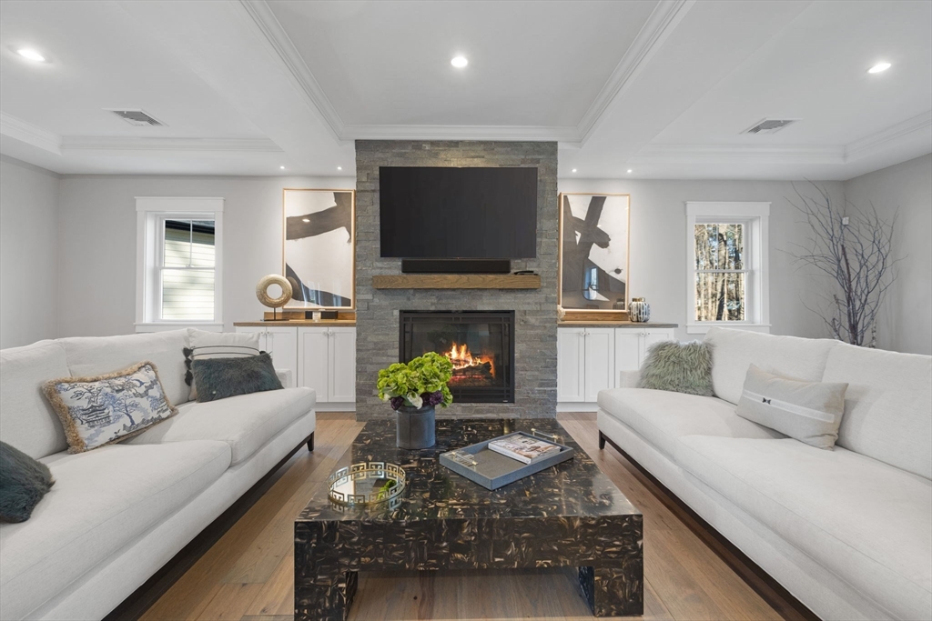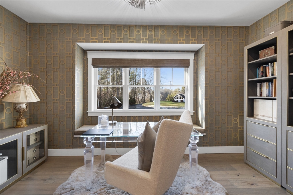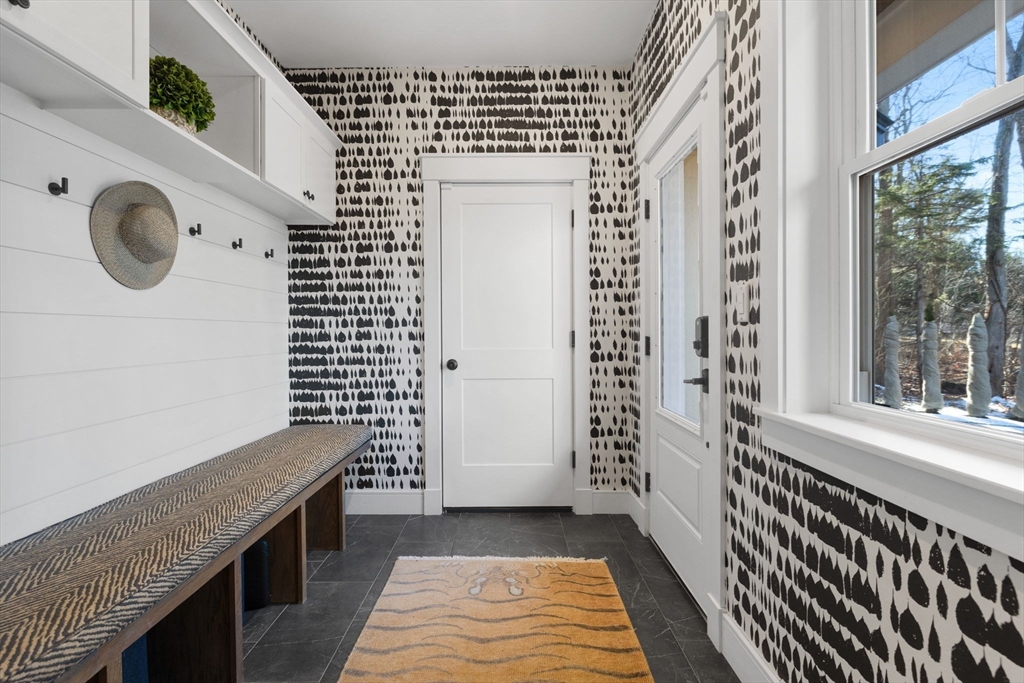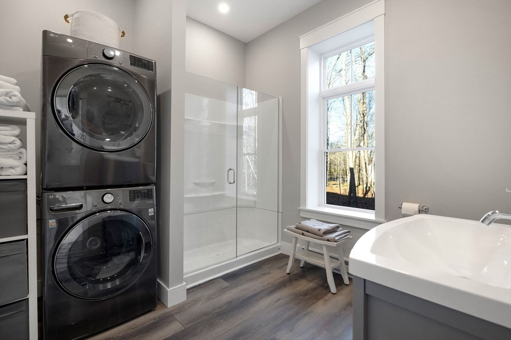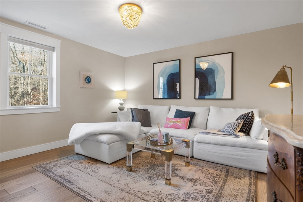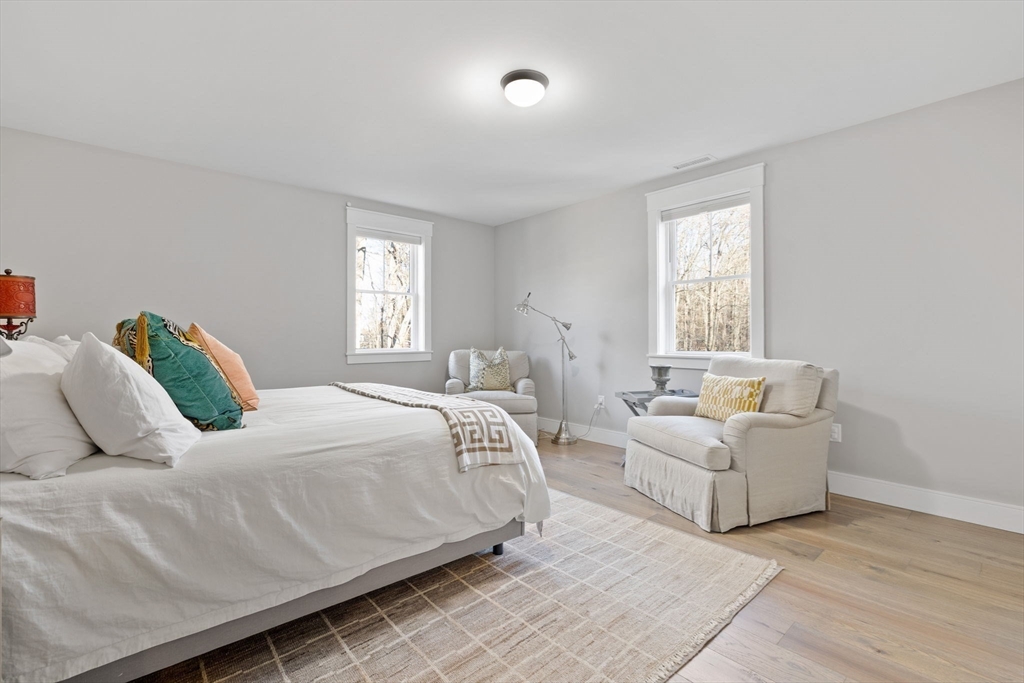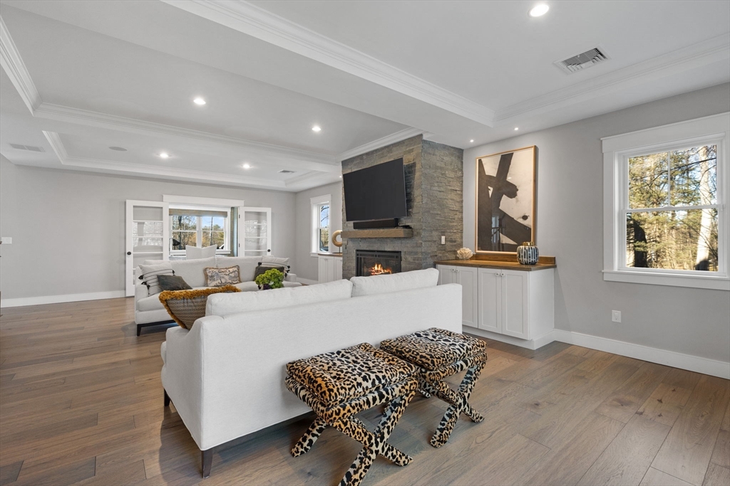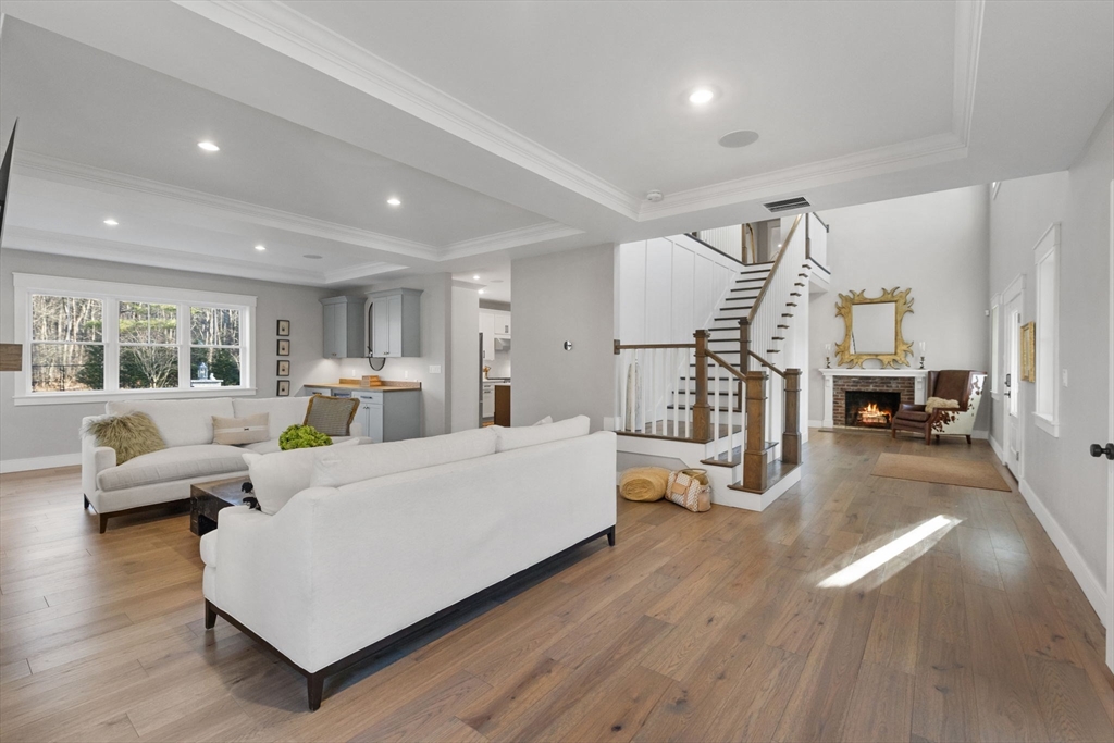 Stunning 2021 Custom Colonial with Additional Separate Dwelling w/Heat/A/C, car lovers dream w/three additional parking spaces all on 2 private acres. This home features 9 ft. ceilings, an open floor plan w/Chef’s kitchen w/Quartz counters, island, Butlers pantry all open to the Dining Room walks out to the private, landscaped architect yard w/large patio, stone walls, gas fireplace all fenced in. Living Room w/Two tray ceiling, Stone fireplace & dry bar is ideal for entertaining. First-floor office is tucked away & private. The mudroom w/built-in has access to the heated 2-car attached garage. Upstairs consists of four en-suite bedrooms & laundry rm. The Luxurious Primary suite features sitting area, custom walk-in closet, & spa bath w/Soaking Tub, Double Quartz Sinks. Lower level includes Family rm, Custom Theater & 1/2 Bath,The separate heated dwelling offers three additional bays, 30’ boat/RV space, full bath/laundry, flex room, & its own septic—ideal ADU potential. Close all Rtes.