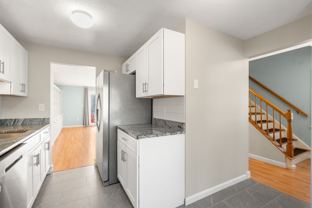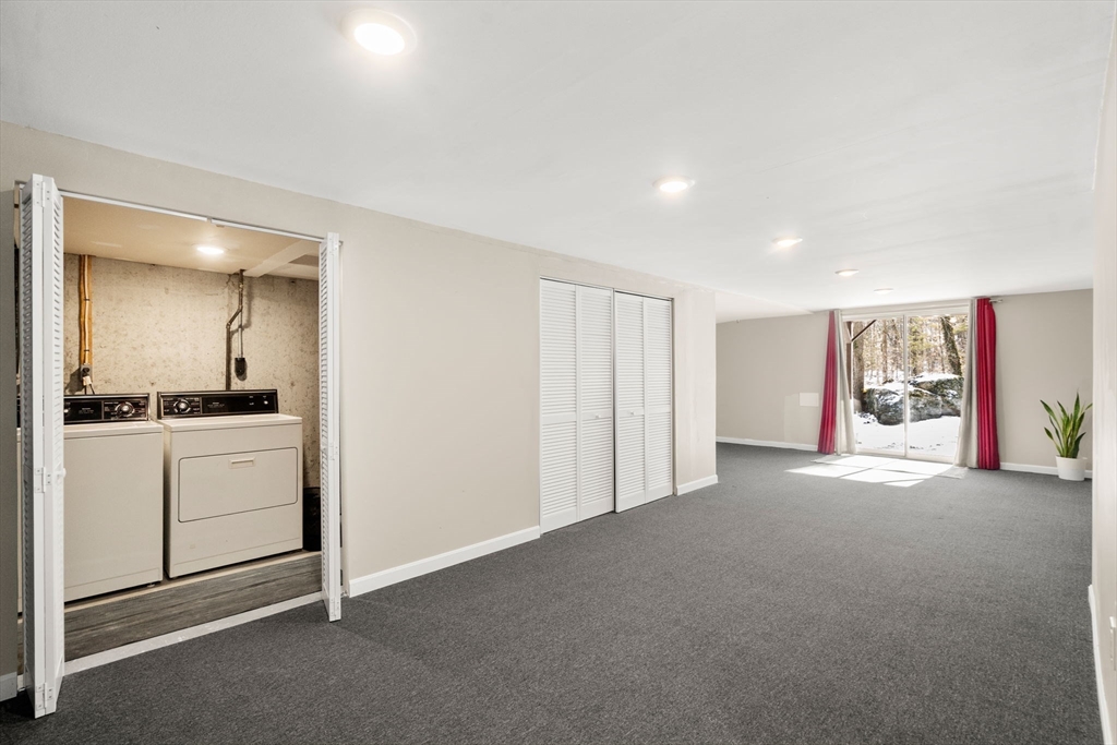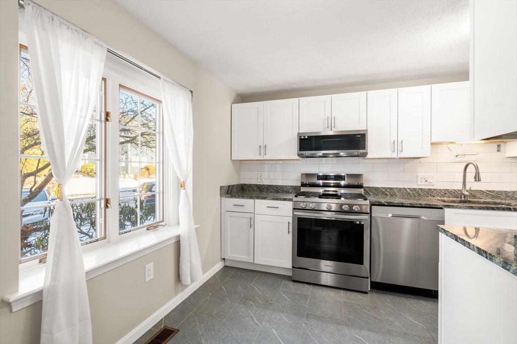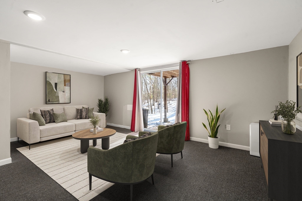 End-unit townhome • Bonus room with fireplace • Walk-out basement • Pool community. Stylish end-unit townhome in Oak Ridge Condominiums with three levels of living plus a semi-finished walk-out basement with future expansion potential. Renovated open kitchen with recessed lighting flows to the dining area and living room with custom built-ins. Sliders to a private deck overlooking landscaped common grounds. The second level has two bedrooms, including a primary with double closets and an updated full bath with a double vanity. Third-level bonus room with wood-burning fireplace ideal for office, media room, or 3rd bedroom. New flooring on the second and third floors and fresh paint throughout. Community amenities include pool house and inground pool. Convenient to downtown Maynard, West Concord shops, restaurants and commuter routes.