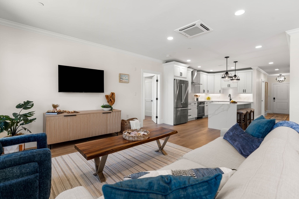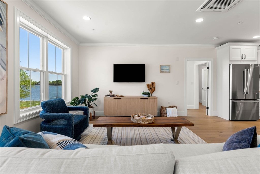 Enjoy breathtaking water views and the ease of modern single-level living on the North Shore. This new, spacious 3-bedroom, 2-bath condominium is designed for the most discerning buyer. This residence features soaring ceilings, oversized windows, top-of-the-line finishes, and private balcony. The chef’s kitchen impresses with Bosch stainless appliances, custom cabinetry, and quartz counters and backsplash, opening to a bright, open-concept living and dining area with European oak hardwood floors. Gaze at the water from the serene primary suite with walk-in closet, heated bathroom floors, double vanity, smart bidet, and a seamless tiled shower. Exclusive amenities include indoor heated parking, elevator, Clubroom Lounge, state-of-the-art fitness center, and Riverside Outdoor Kitchen and Patio. Just across from vibrant historic downtown Salem and the train to Boston, this stunning condominium blends sophistication, comfort, and convenience in a truly exceptional setting.