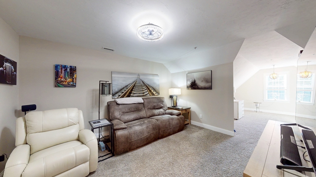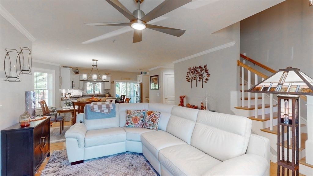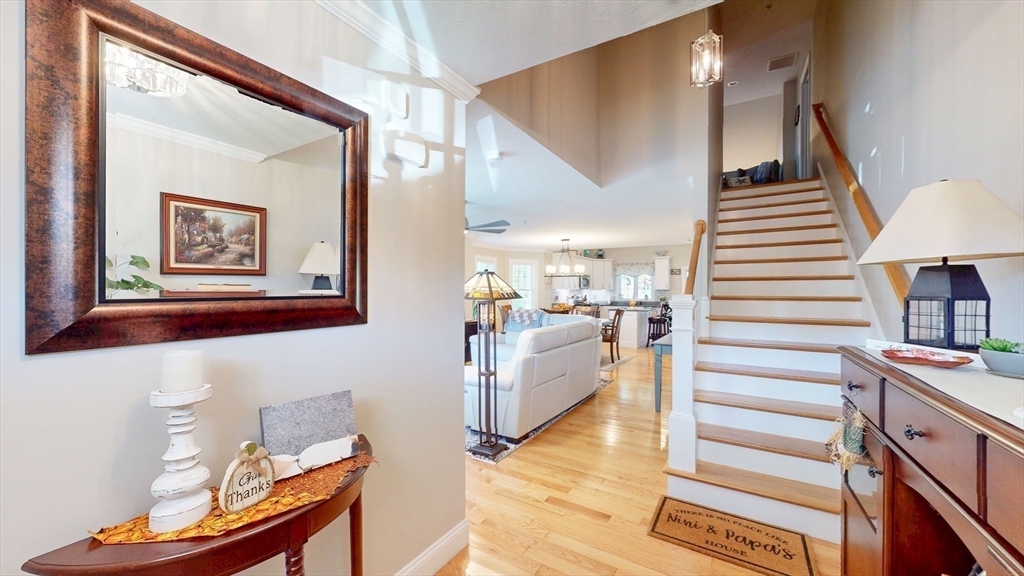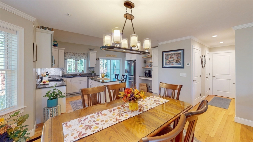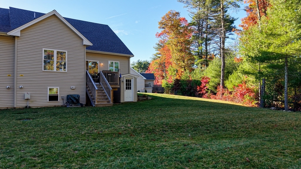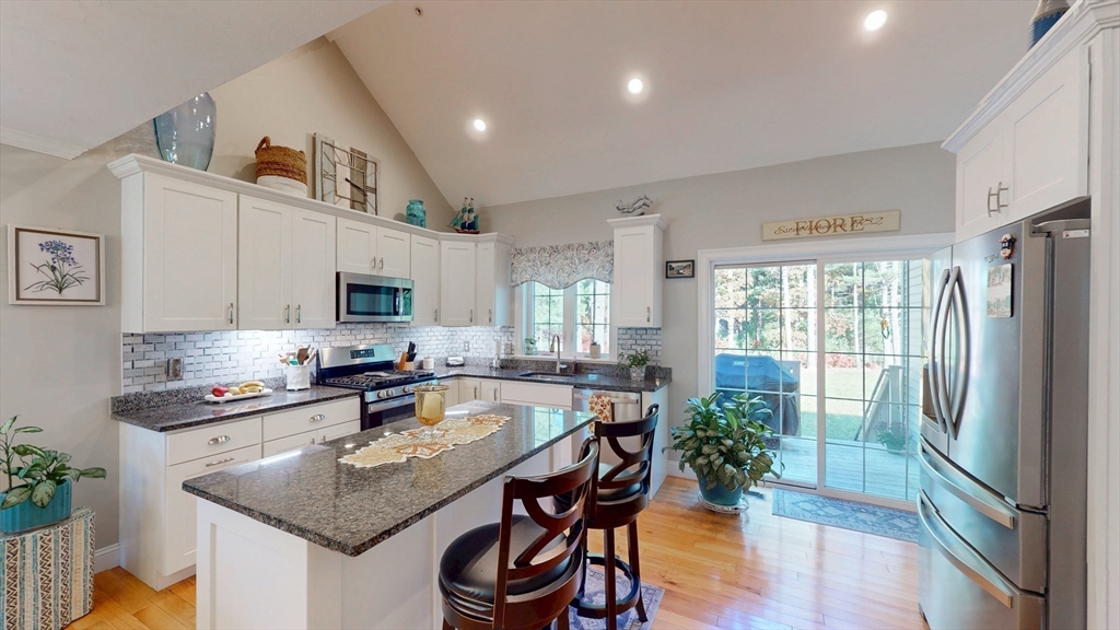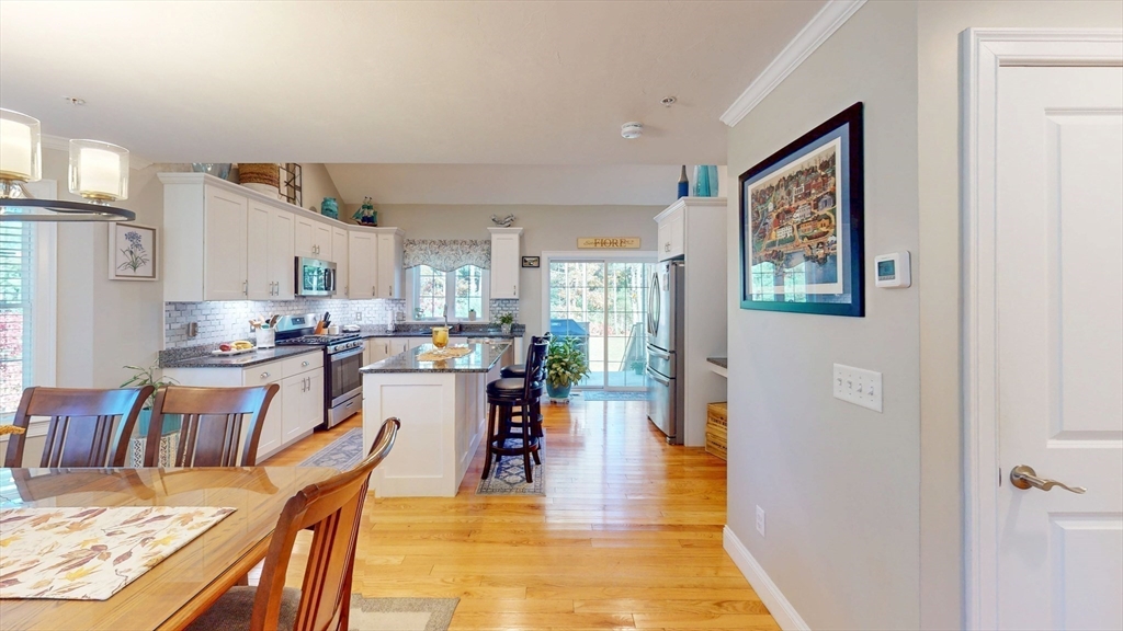 The Residences at White Oak, Carver's over 55+ townhouse 32 unit subdivision offers first floor master ensuite with harwood floors, walk-in closet, double sinks, an additional bedroom on 2nd floor (carpet), 2.5 baths. Open Floor plan first floor includes hardwood flooring throughout lower level and first-floor stackable laundry. Kitchen includes stainless appliances, island, and granite countertops, tiled backsplash. All light fixtures, door handles, cabinetry for the pantry closet and coffee bar were upgraded. Upgraded to a propane gas fireplace, One car attached garage, full basement with doghouse access, 200AMP electrical service, Central A/C, propane heat, comcast available, town water and private septic. This is an end unit at the end of the street offering more privacy than some. A fantastic location close to Rtes 58 and 44, commuter rail as well as shopping.