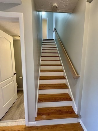 Welcome to "The Falls". Rare find 2 level top floor unit in highly desirable condominium in Quincy. South facing double sliding doors on the first floor and large surrounding windows on the 2nd floor bring in abundant natural sunlight. Hardwood floors throughout. Living room features fireplace and 2 sliding doors leading to the private balcony. 2 good size bedrooms both with high ceilings, large windows, skylights and large closets. 1 full bath on the 2nd fl and 1 half bath on the1st fl. In-unit laundry and central cooling and heating. 1 deeded parking spot and an abundance of visitor parking. Freshly painted throughout. Professionally managed, pet-friendly community with superintendent on-site. Convenient location with walking distance to Faxon Park, shops, restaurants. Easy access to highways and public transportation.