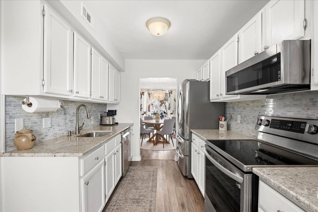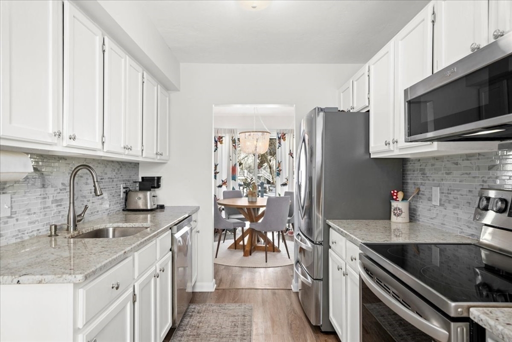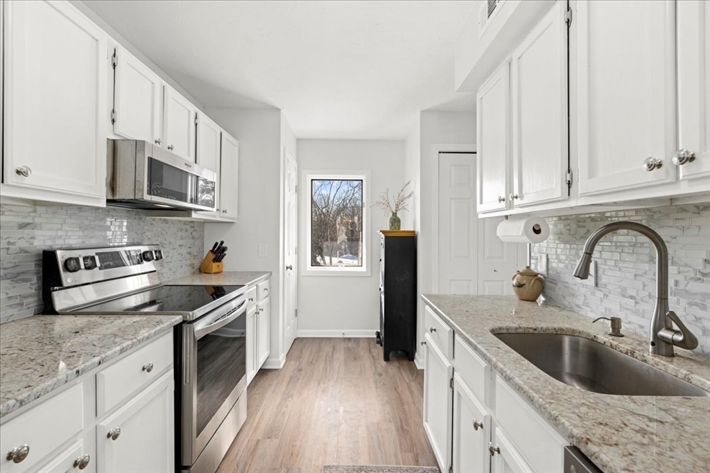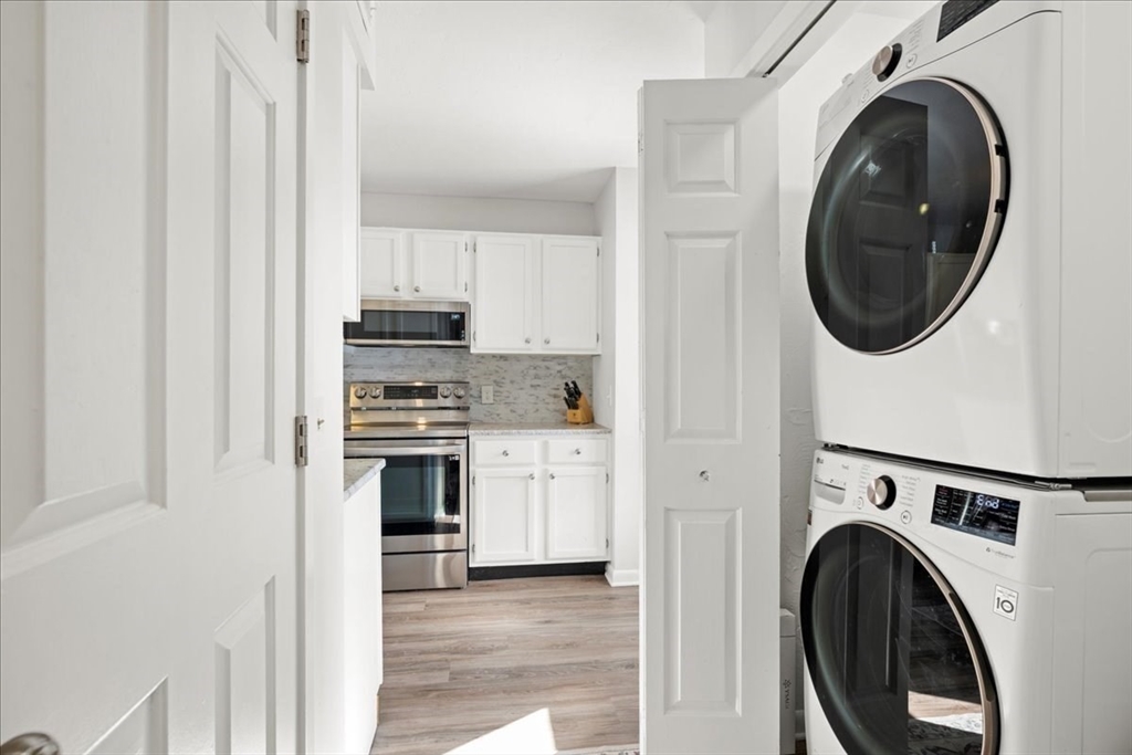 Welcome to Beacon Park on Webster Lake! This desirable end-unit townhouse with private entrance, offers scenic water views overlooking the courtyard and gazebo, with easy access to the association pool and private beach. The home features approximately 1,200 sq ft of living space with 2 bedrooms and 2.5 baths. The bright kitchen opens to the dining area and private deck, perfect for relaxing or entertaining. The living room includes a pellet stove for added warmth and charm as well as a second deck/balcony. The primary suite offers an updated private bath with tile shower and a custom closet system. Additional highlights include in-unit laundry, ample storage, and a detached garage with extra parking. Conveniently located near shopping, restaurants, and major routes, this property is ideal for year-round living or a weekend lake retreat. This beautifully renovated unit is move-in ready!