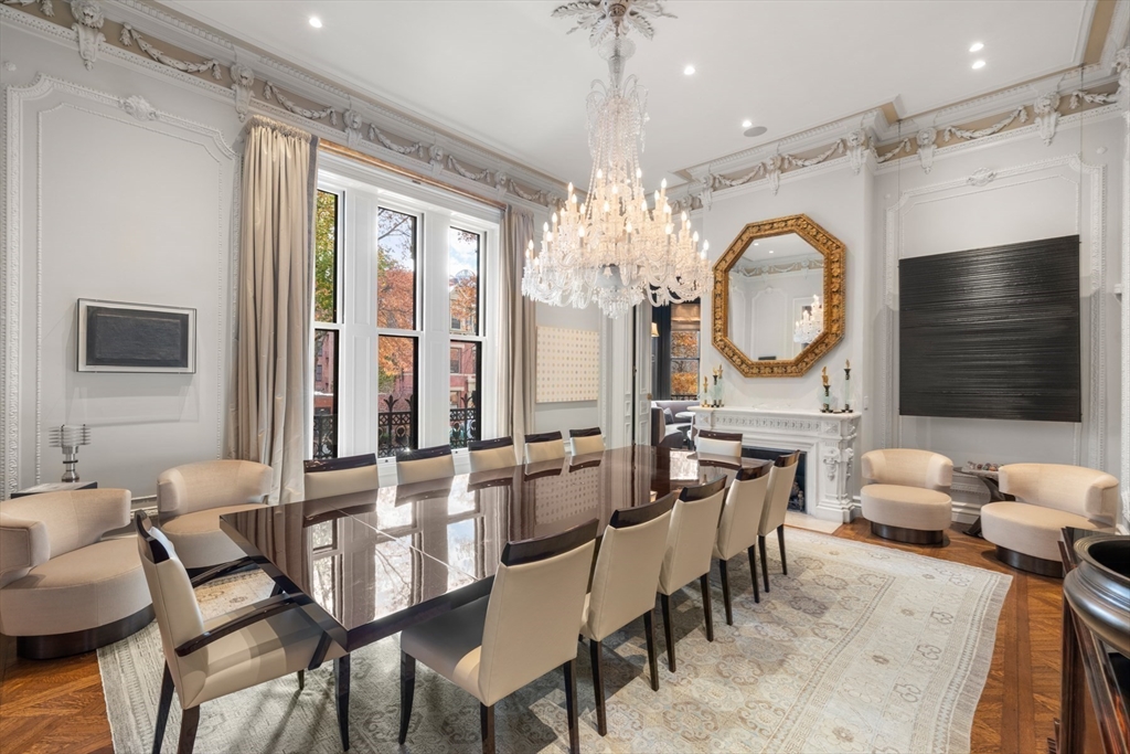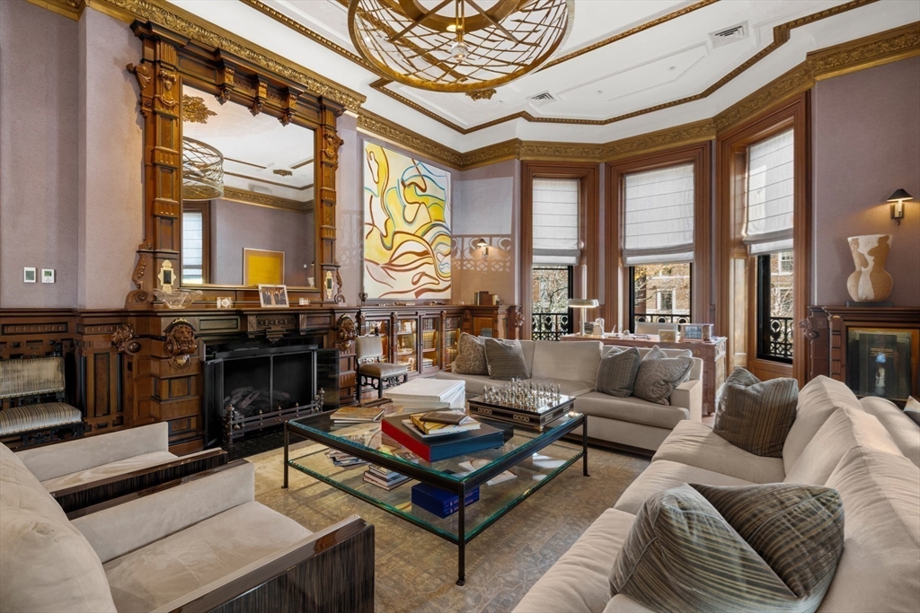 Introducing Residence 2 at the Cushing-Endicott House, one of Back Bay’s most celebrated architectural masterpieces. This historic landmark building, set at the corner of Marlborough and Dartmouth Streets, offers the rare advantage of 3-sided exposure and an impressively expansive width, further enhanced by breathtaking museum-quality period detailing. The spectacular floor plan includes a grand entry foyer, sweeping wrought-iron gilt staircase, magnificent formal dining room with sophisticated French-inspired millwork, baronial sized living room with hand carved original woodwork, and a great room currently fitted as a full bar with an informal dining area and adjacent to a full kitchen. Additional features include 4 bedrooms including a luxurious primary suite, soaring 14-foot ceilings, expansive bay windows, 6 striking fireplaces, and an elevator. Complete with 2 deeded parking spaces, this unparalleled residence at the Cushing-Endicott house offers a once-in-a-lifetime opportunity.