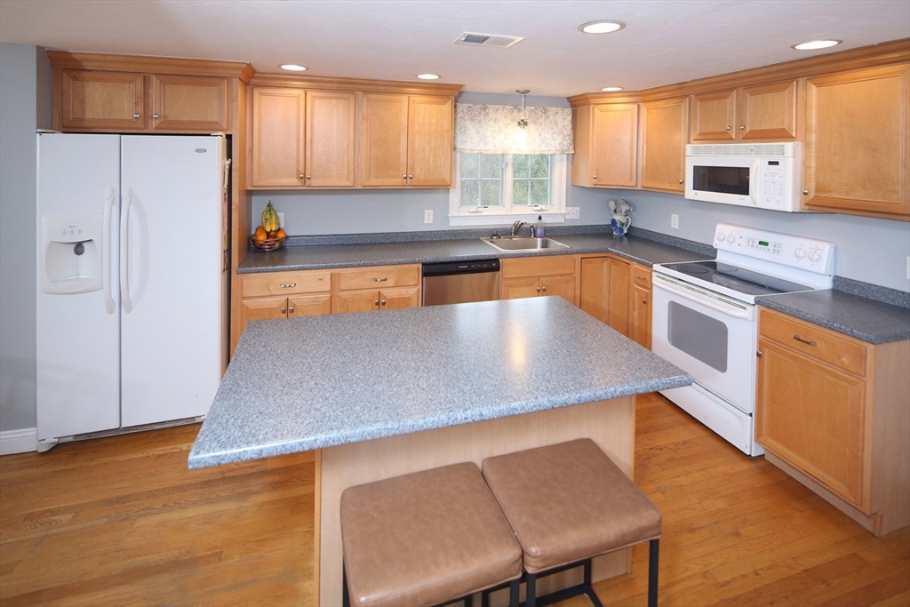 OPEN HOUSE SAT & SUN JAN 17th & 18th @1130a-1p both days. This spacious 3 bedroom colonial home offers plenty of space for everyone. The large eat in kitchen with center island opens to both the living and dining room making it suitable for entertaining and/or family living. The second floor boasts 3 generous bedrooms, including a master suite with master bath and walk in closet. Outside you will find a level one acre fenced in yard with inground pool, shed and irrigation abutting conservation land. Other features include: hardwood floors, 2 car under garage, deck, patio, covered porch, central air, fireplace, first floor laundry, cathedral ceilings and finished walk out lower level family room. Seller will provide passing Title 5 cert at time of closing. Showings begin at open house on Saturday at 1130a.
