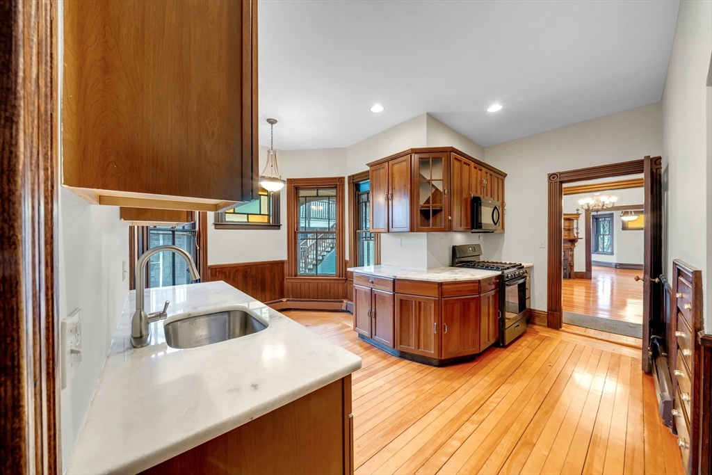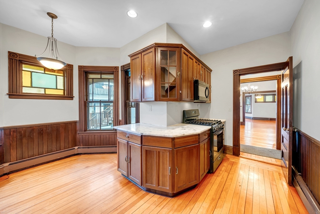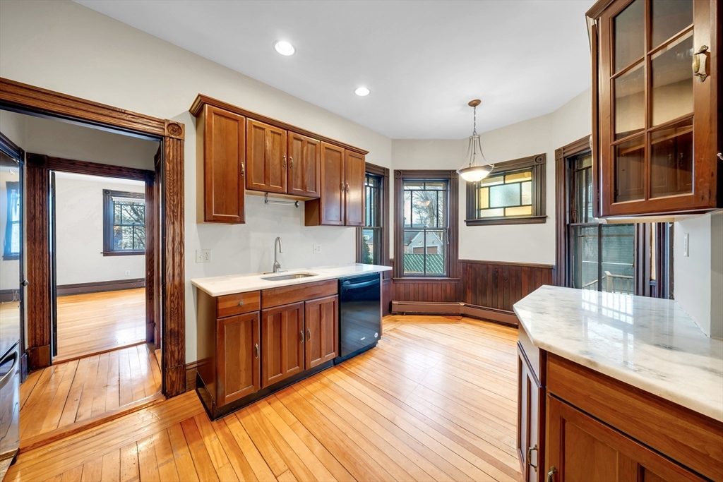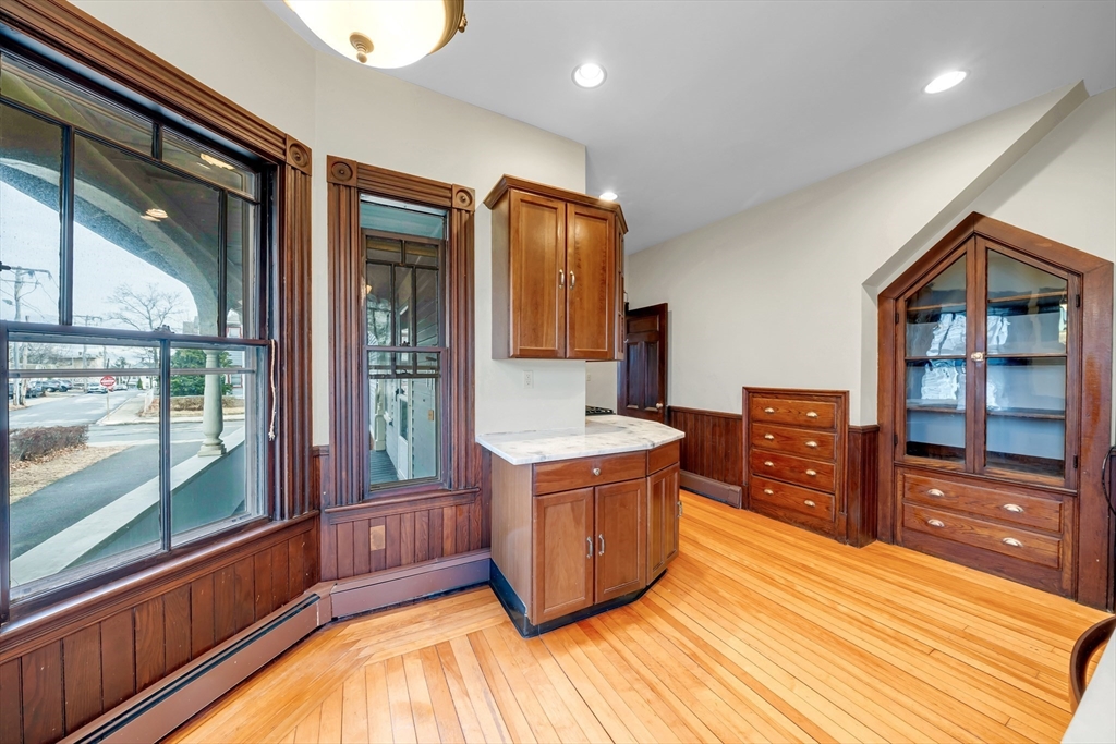 Victorian-inspired 2-bed, 1.5-bath condo offering 1,400+ sq ft across two levels, featuring two fireplaces (one outfitted with a working gas insert), one assigned off-street parking, and a sizeable backyard for rare outdoor space in Winthrop. An updated kitchen with vintage accents and quality craftmanship deliver timeless character —charm you simply can’t reproduce in today’s construction. The space immediately provides a single-family feel by opening to a generous living and dining area boasting ten ft. ceilings, with a well-suited half bath on the main level and a full bath adjacent to the primary bedroom. This home combines cozy ambiance and coastal neighborhood living in one standout residence. The property is located directly next to the historic library and walking distance (3 minutes) to downtown Winthrop, with convenient access to coffee shops, a yoga studio, and local restaurants. HOA covers water, blanket insurance, and snow removal. The stairs and deck are brand new.