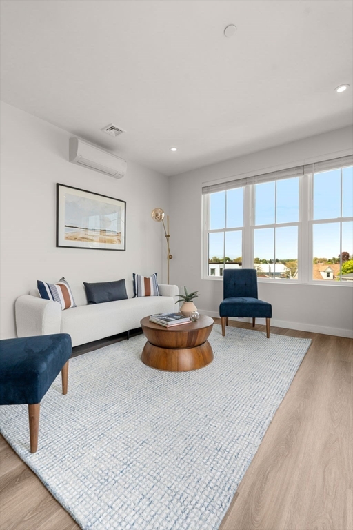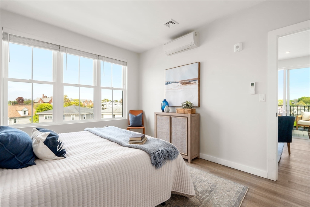 Welcome to Unit 401 at The Somerset, a spacious 1-bedroom, 1-bath home with an open-concept layout and a large living and dining area perfect for both everyday living and entertaining. With warmer days ahead, the expansive private deck is set to become a natural extension of the living space for dining, relaxing, and entertaining, all with views overlooking the town center. Inside, enjoy quartz countertops, stainless steel appliances, central A/C, and stylish finishes throughout, along with access to The Somerset’s fitness room, elevator, and cozy resident lounge for remote work or casual connection. Just moments from sandy beaches, waterfront parks, and local restaurants, with convenient access to downtown Boston via the Blue Line or seasonal ferry, Unit 401 offers a seamless blend of indoor comfort and outdoor living by the sea.