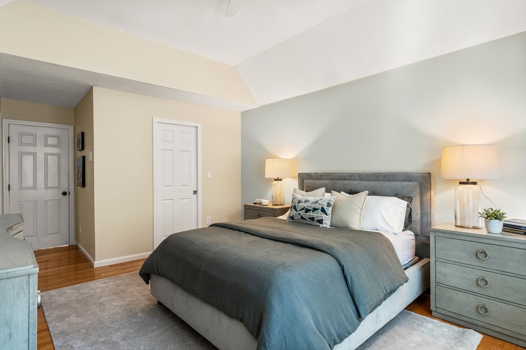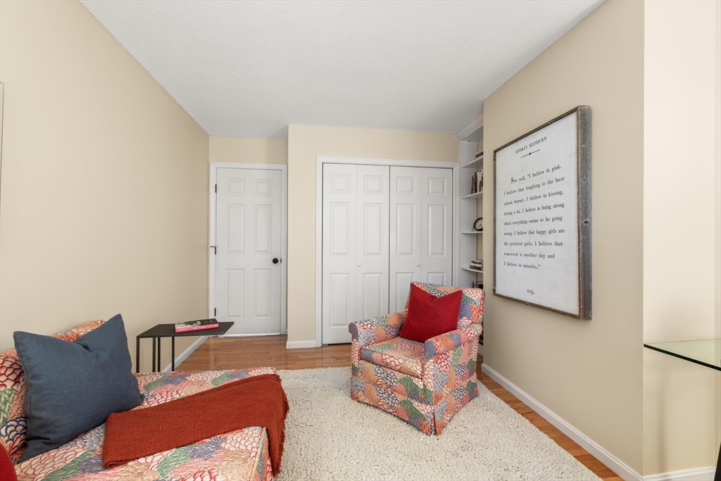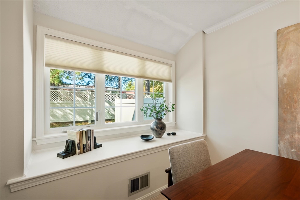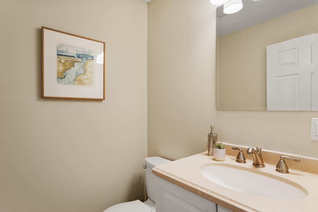Enjoy carefree living beginning with an ideal location. Proximate to commuter options, parks and conservation land, shopping, healthcare and schools. Enter into a foyer which leads to a large open living area. A fireplace with surrounding book shelves and a slider to your private patio provide a variety of comforts. The adjoining dining area with a window seat and open wall space offers options for artwork. Three generous bedrooms and two full baths all located on the second floor. Storage is abundant throughout this home. The lower level awaits your finishing concept. Laundry and utilities are conveniently installed along the walls leaving open space for your personal needs.