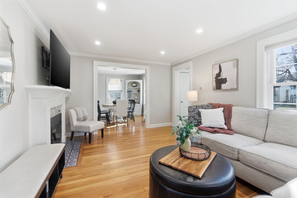Welcome Home! Move right in to this 4-bedroom, 2 full bath Colonial set in a quiet neighborhood with exceptional commuter convenience. Ideally located with easy access to Boston and Rts. 28, 128, & 93, one block from the playground and just minutes to Lake Quannapowitt! Inside, you’ll find a freshly painted interior and a beautifully updated kitchen and two full baths, creating a bright, modern feel throughout. The main level features a fireplaced living room, a dedicated dining room for gatherings, and a flexible bonus room ideal for a home office, playroom, or guest space. The finished basement adds valuable living space—perfect for entertaining, home gym, playroom—or all three. Enjoy outdoor living on the screened porch overlooking the yard, plus a patio in the flat, fenced-in backyard. A detached one-car garage completes this wonderful offering. Comfort, versatility, and an unbeatable location—this home truly checks all the boxes!
