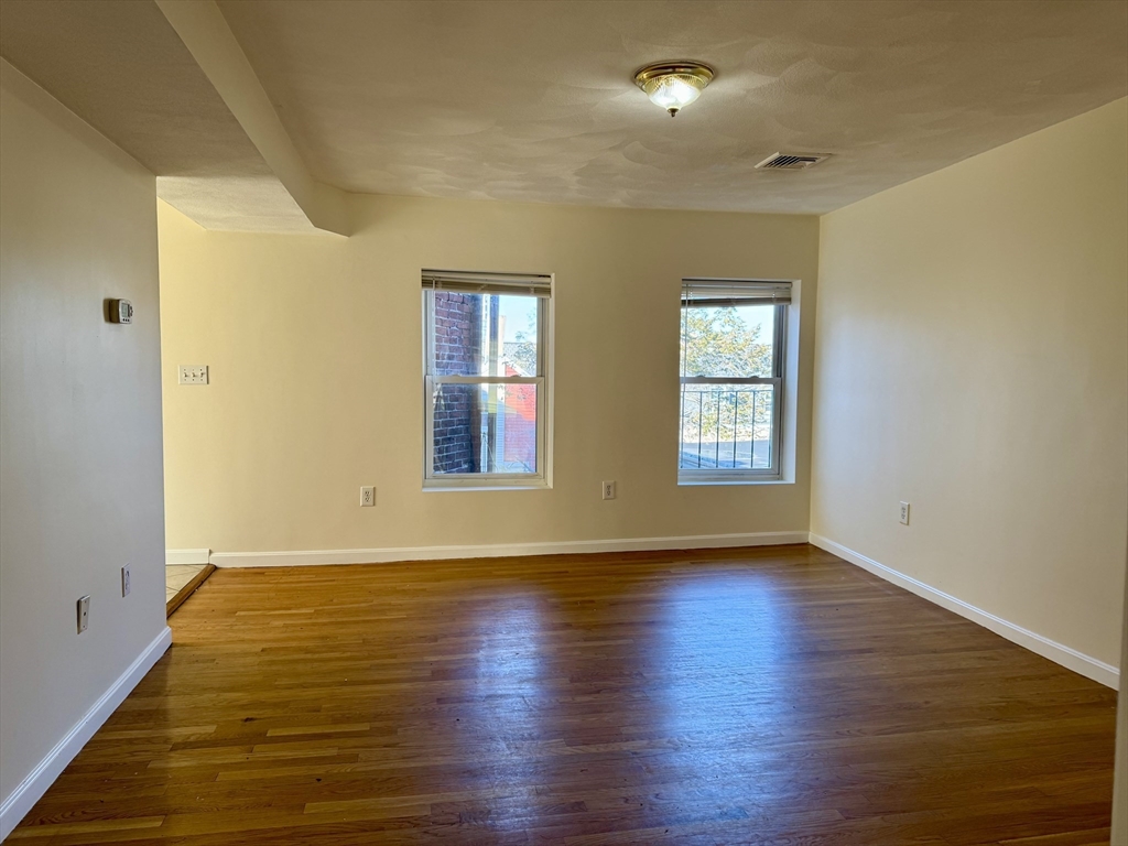 Third-floor well layout, three bedrooms, living room, eat-in kitchen, gas cooking, hardwood floors, high ceilings, gas central heat, and air conditioning. The apartment is located a few hundred feet from Maverick Station on the Blue Line. The apartment is ready for occupancy on February 1, 2026.