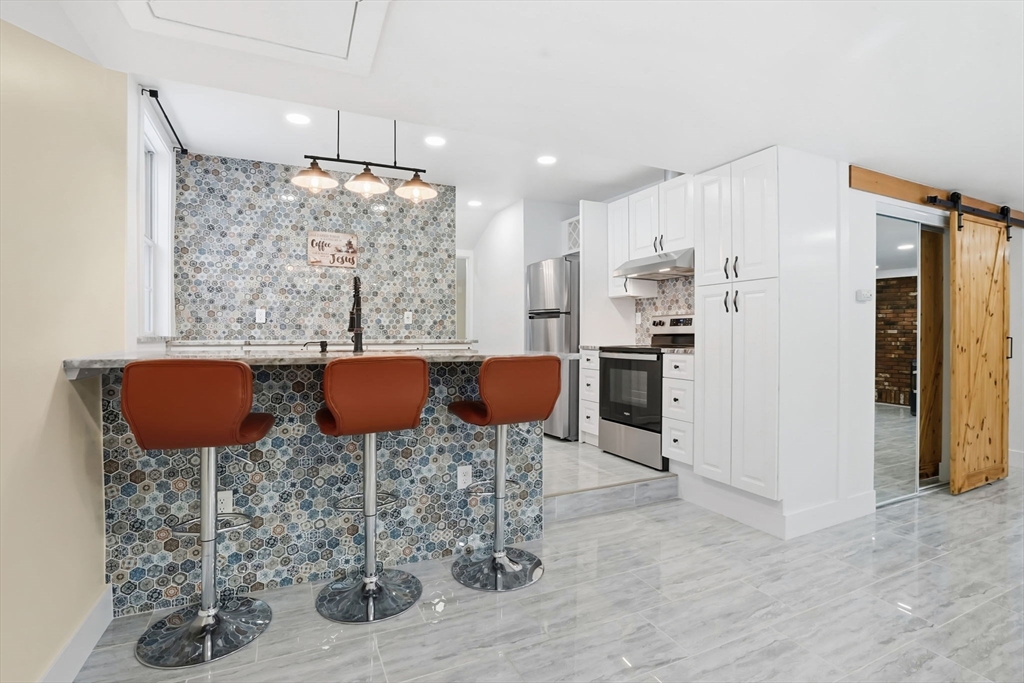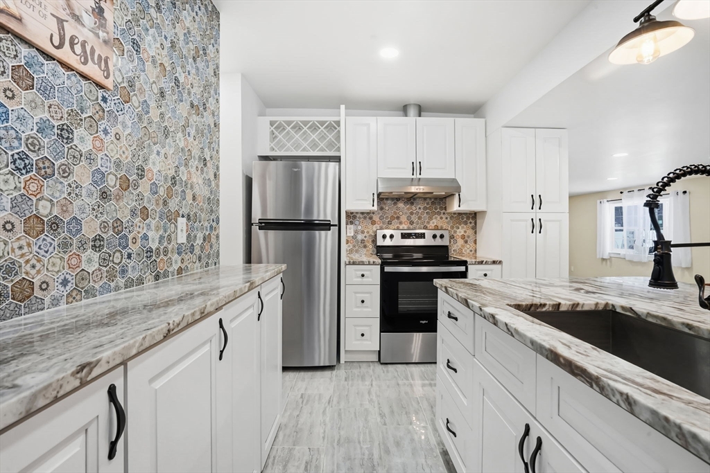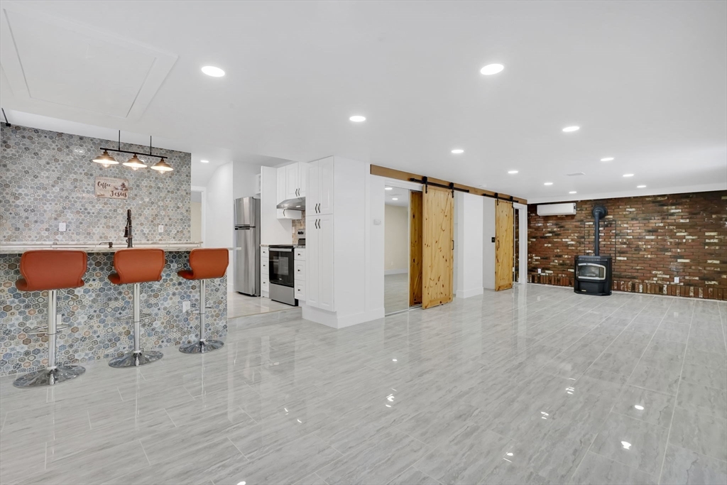 An Absolute GEM, this renovated bungalow has so much to offer! A beautiful flat lot with gardens, patio dining, deck dining & shed with privacy fencing around most of the yard is just fantastic! The property offers a back gate for a short cut to the lake as a sweet bonus! As you enter this beautiful home, a WHITE remodeled kitchen awaits you w/ stainless appliances, breakfast bar, granite c-tops & pantry opening to a spacious dining rm/living rm combo w/ pellet stove offering much natural light. Two bdrms w/ wood laminate floors & vaulted ceilings are situated to the right side of home. The primary bedrm features vaulted ceilings, mirror reflected picture window & access to deck dining. Seller states upgrades include: 25 yr roof (2024), radiant heated flrs, mini splits, heat pump, insulation, some replacement windows, driveway, patio, deck, all flooring, kitchen & bth renovations- most completed in 2021. Seller states he will leave cameras & propane tank is owned- BONUS!!