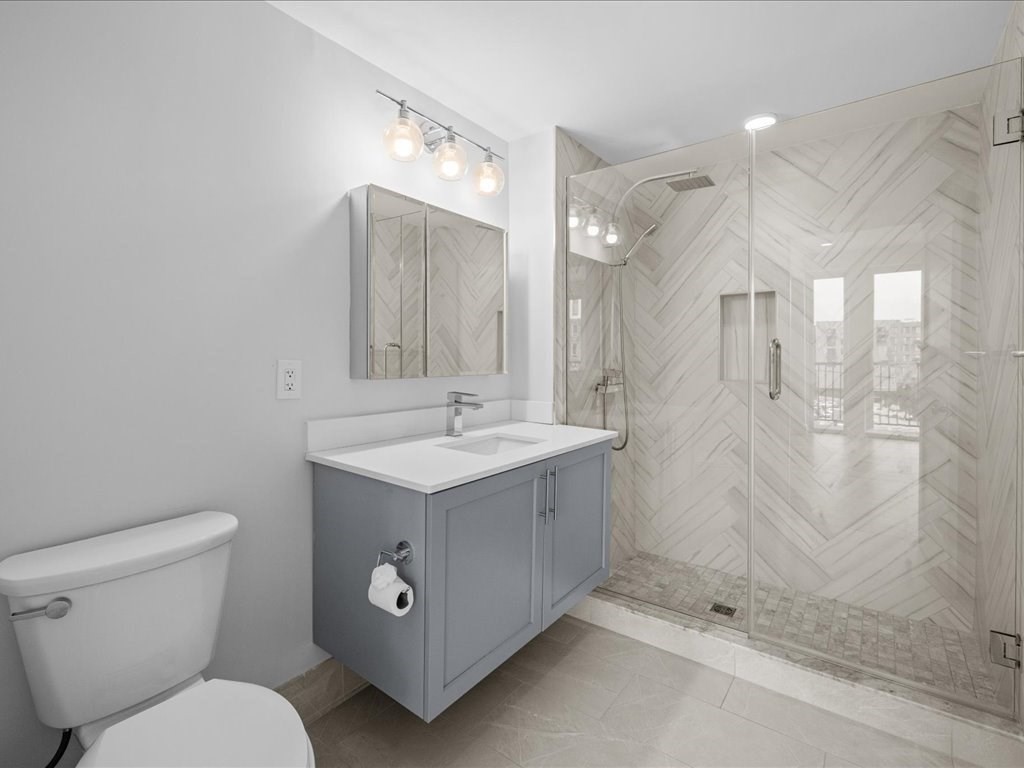 A rare opportunity to lease the only 3-bed at Stadia 50, Boston Landing's premier address. This 1,500 SF single-level penthouse with 2 garage parking blends modern design with refined finishes, including a chef's kitchen with Calacatta quartz countertops, custom cabinetry, Thermador & Bosch appliances, & generous island. Wide-plank birch floors flow throughout the expansive open-concept layout, while the primary suite offers dual custom closets, a spa-like bath with Porcelanosa fixtures and quartz floating vanities, plus a double balcony framing breathtaking Boston skyline views. Two additional bedrooms provide flexibility for guests or a home office, and outdoor living is elevated with a massive private deck complete with a built-in Napoleon gas grill. Residents enjoy access to a fitness center, club room & common roof deck. Ideally located in Boston Landing, the home offers seamless access to the Commuter Rail, Mass Pike, New Balance HQ, and some of the neighborhood's best dining.