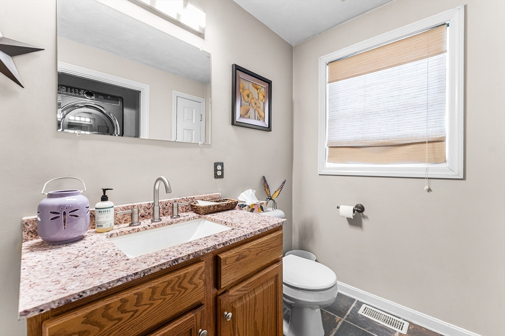 Set on over an acre at the end of a quiet dead-end road, this inviting colonial perfectly blends pastoral beauty with contemporary living. The heart of the home is a bright, updated kitchen equipped with ss appliances, a breakfast bar, and a casual dining space that transitions naturally into the living area and formal dining room. Convenience is prioritized with a dedicated main-level laundry room, while the second floor serves as a private retreat featuring a primary suite with a spacious walk-in closet and en-suite bath, alongside two additional well-sized bedrooms and a secondary full bath. The layout extends to a versatile walk-up third floor, perfect for a variety of uses, while the exterior provides a low-maintenance vinyl finish, a two-car garage, and a private rear deck overlooking an above-ground pool and lush perennial gardens. Situated in a peaceful setting, this property remains remarkably accessible, located just minutes from Rt 2 and essential town amenities.