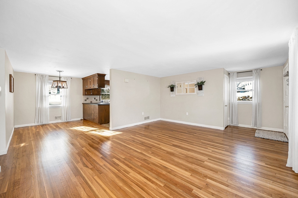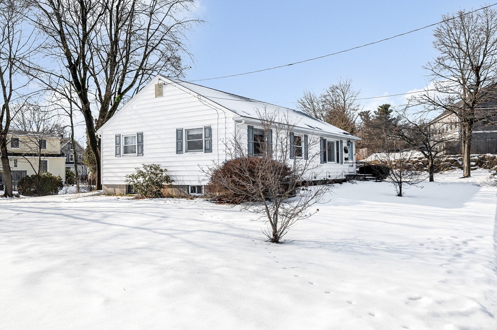 Tremendous, well maintained Ranch at the end of a dead end street in the heart of Dracut! This home boasts a cabinet packed kitchen with stainless steel appliances that flows wonderfully to your sun drenched dining room, large living room with a bay window, gorgeous hardwood floors throughout, full bath with an updated vanity and tub/shower, all 3 bedrooms are good sized with ample closet space and the primary has it's own half bath, central air, vinyl siding, vinyl windows, newer Reeds Ferry shed, tons of natural light, large unfinished basement that has loads of potential, and so much more! The deck over looks your large, private back and side yard that is perfect for all your outdoor activities. Ideal location that is close to shops/restaurants, Dracut High/Middle School, tax free NH, and everything else Dracut has to offer!