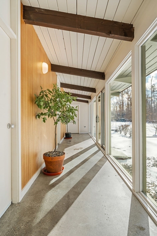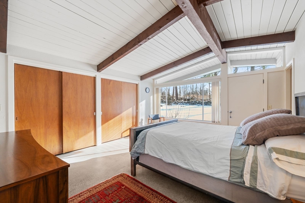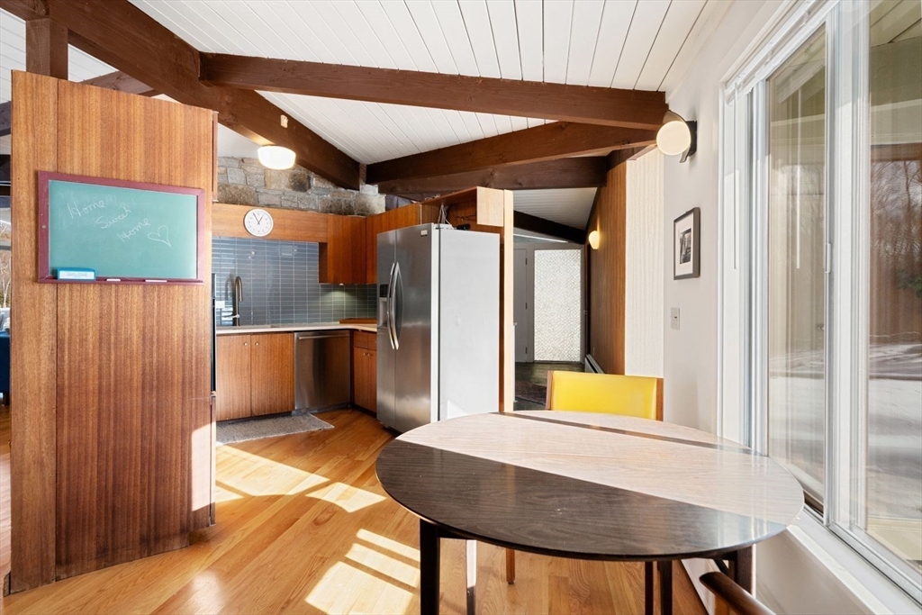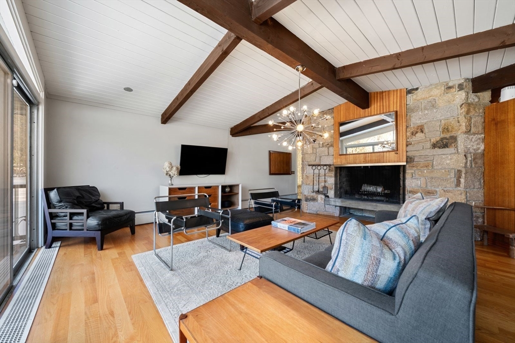 Set on 4+ bucolic acres of land at the end of a quiet country circle you will discover this unique Eichler inspired mid-century modern home. Walls of glass and open post-and-beam construction blur the lines between indoors and out offering a deep connection to nature. Original paneling, concrete and hardwood floors, in-floor radiant heat (select areas) and two granite fireplaces showcase true period character. The main level features 3 spacious bedrooms and 2 baths, including a primary suite with separate entrance ideal for multi-generational living. The finished walk-out lower level has a beautiful family room with wood burning fireplace, laundry and it is plumbed for a wet bar and a half bath. A large covered carport keeps the snow off your car and there is generous guest parking. Many original light fixtures/features and new septic in 2020. A rare opportunity to move right in or restore and elevate an architectural gem. Showings begin on Saturday at open house.