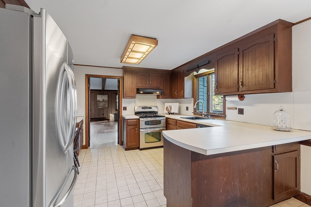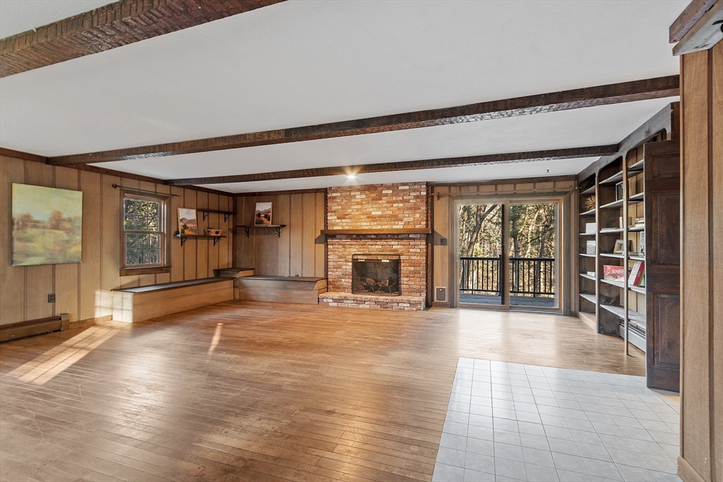 Offered for the first time in 55 years, this home is set on a beautiful one-acre cul-de-sac lot abutting Harold Parker State Forest. The Mansard-style roof allows a spacious floor plan, generously sized rooms, whole house generator, freshly painted interior, smooth plaster walls, hardwood floors, and oversized insulated windows throughout. The family room features natural wood paneling and beamed ceiling for rustic charm, a raised fireplace, full-wall bookcase, separate front entrance and slider to rear deck.The bright living room also offers a fireplace with wood stove and sliders to same deck spanning the back of the house. The dining room provides great space for memorable gatherings. Bathrooms include a full bath on the 2nd floor with 3/4 bath in the primary, 1/2 bath on the main floor and a 3/4 bath in the basement with sauna! The unfinished basement offers laundry, workout and workshop space, and storage. A unique property offering privacy, recreation, relaxation and tranquility.