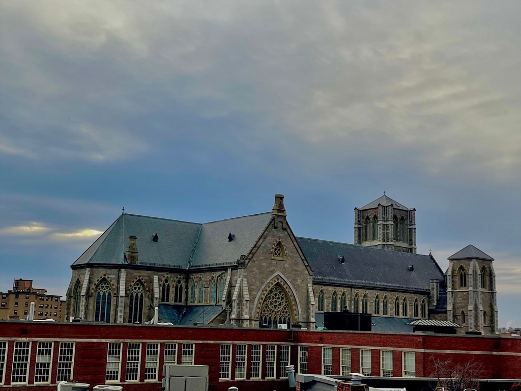Renovated 3-bedroom penthouse duplex w/ a sprawling private roof terrace & 2 on-site garage parking! This sun-drenched home offers high ceilings, elegant woodworking, & abundant storage. The open living /dining area features a bay window overlooking the landscaped courtyard, while the thoughtfully designed kitchen includes quartz countertops, custom cabinetry, a tiled backsplash, gas cooking, & pass-through window — ideal for entertaining. A powder room & 2 entry closets complete the main level. A wide stairwell leads to three bedrooms & roof deck. The primary suite boasts two generous closets & an en-suite bath with an oversized glass shower. Two guest beds are conveniently located near the second full bath w/ vented laundry. The huge private roof terrace offers stunning sunsets & historic neighborhood views, accessed via a full stairwell with an oversized skylight hatch. With a walk score of 98, enjoy easy access to the SoWa Art District, shopping, dining, & public transportation!