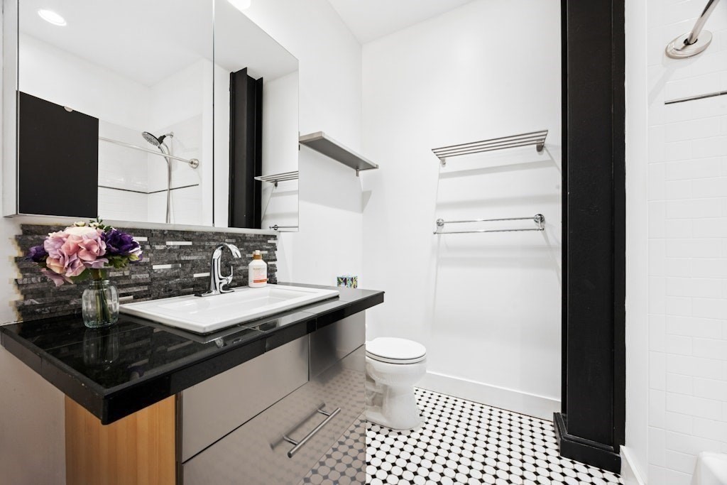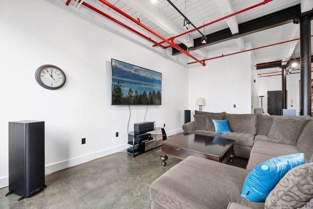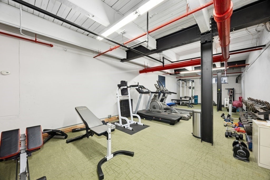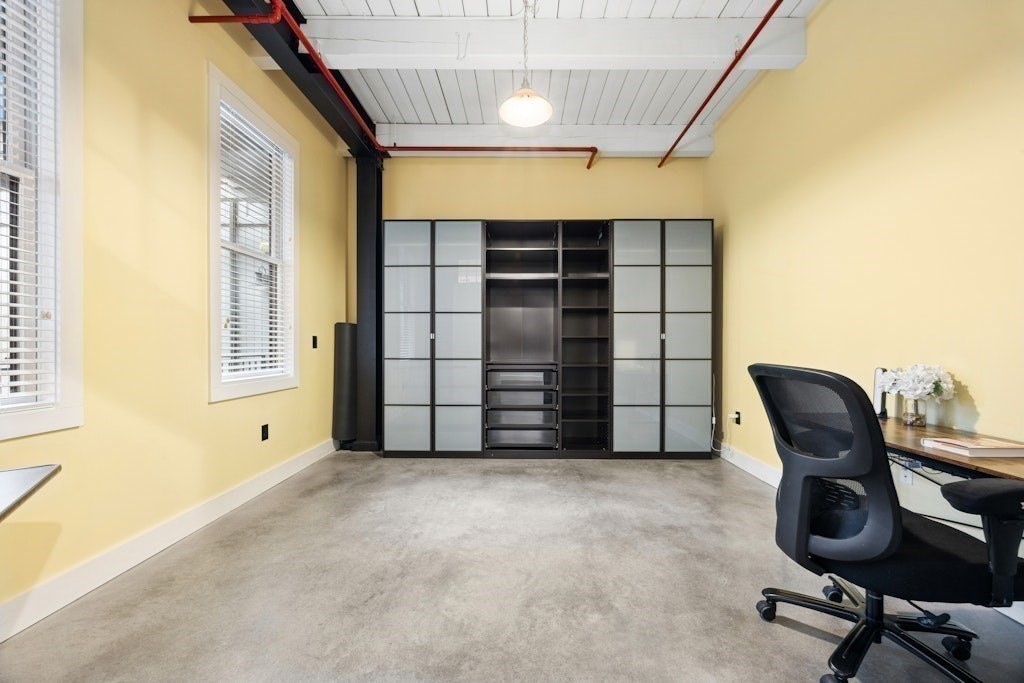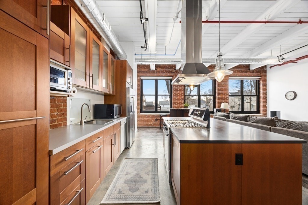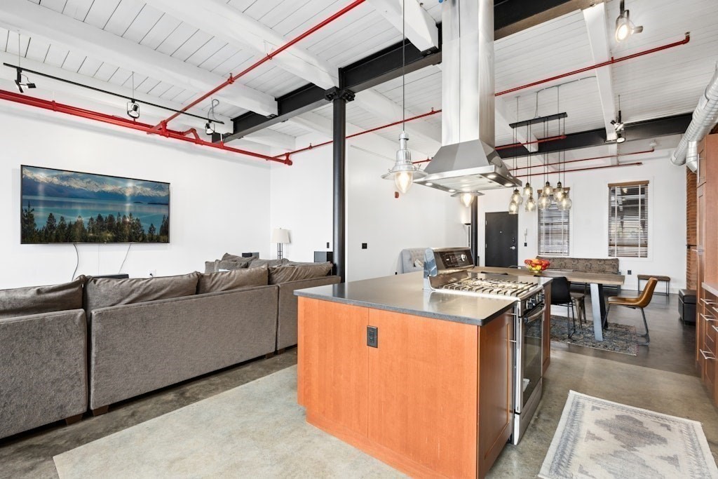 Loft living at its best! This distinctive 2-bedroom, 1-bath residence is rich in character, featuring exposed brick and beams, soaring ceilings, and oversized windows. Enter through the building’s interior courtyard and walkway, allowing natural light to pour into the main living space from both sides. The open-concept kitchen, dining, and living area is ideal for both everyday living and entertaining. Two generously sized bedrooms offer ample closet space and storage. The full bath and in-unit washer and dryer are conveniently located near the primary bedroom. Enjoy the benefits of a professionally managed building with basement storage and shared fitness room. A dedicated parking space completes this exceptional offering.