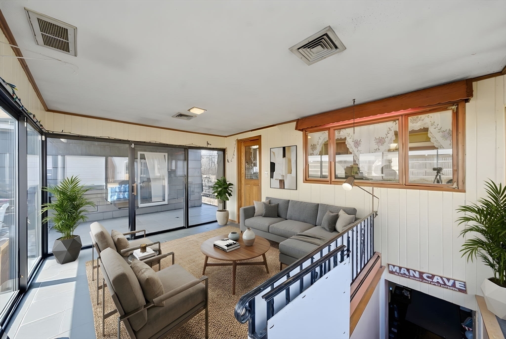This custom-built Ranch on a corner lot facing the Merrimack River is ready for your vision. Offering a great opportunity for a winter renovation project or for those looking to customize their own space, this property is filled with potential.The main level provides convenient single-level living, featuring a kitchen with a dining area, a living room with a fireplace and a large picture window to view river sunsets, two spacious bedrooms, and a full bath. This level also includes a sunroom with heat and A/C that opens to a deck and an expansive backyard perfect for entertaining.The lower level offers additional finished space ideal for a family room, game room, or home office—along with a full bath and a laundry room with extra storage. The detached two-car garage includes electricity and may offer the potential for conversion into an ADU for future living space.The property is ideally located minutes from major commuter routes, shopping, parks, N.H. and the Riverside Boat Ramp.