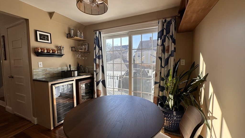 Discover this gorgeous Victorian home in sought-after Olmstead District-just a short stroll to beaches, shops and restaurants. Featuring 5 bedrooms and 2.5 baths, this home blends classic charm and thoughtful updates throughout. A restored wrap around porch welcomes you into an inviting interior with hardwood floors, coffered ceilings, and an elegant staircase. Oversized doorways connect the living and dining rooms, with a gas fireplace and a cafe-style bar area. The updated kitchen impresses with stainless steel appliances, induction oven, and a generous peninsula-perfect for entertaining in this open layout. Second floor offers four well-proportioned bedrooms and a full bath. The expansive third floor is devoted entirely to the primary suite, complete with sitting area, large double closets, bonus nook ideal for reading or a nursery, and a full bathroom with a jacuzzi tub. Additional upgrades include mini-split units and cellulose insulation. Beautiful house in a great location!