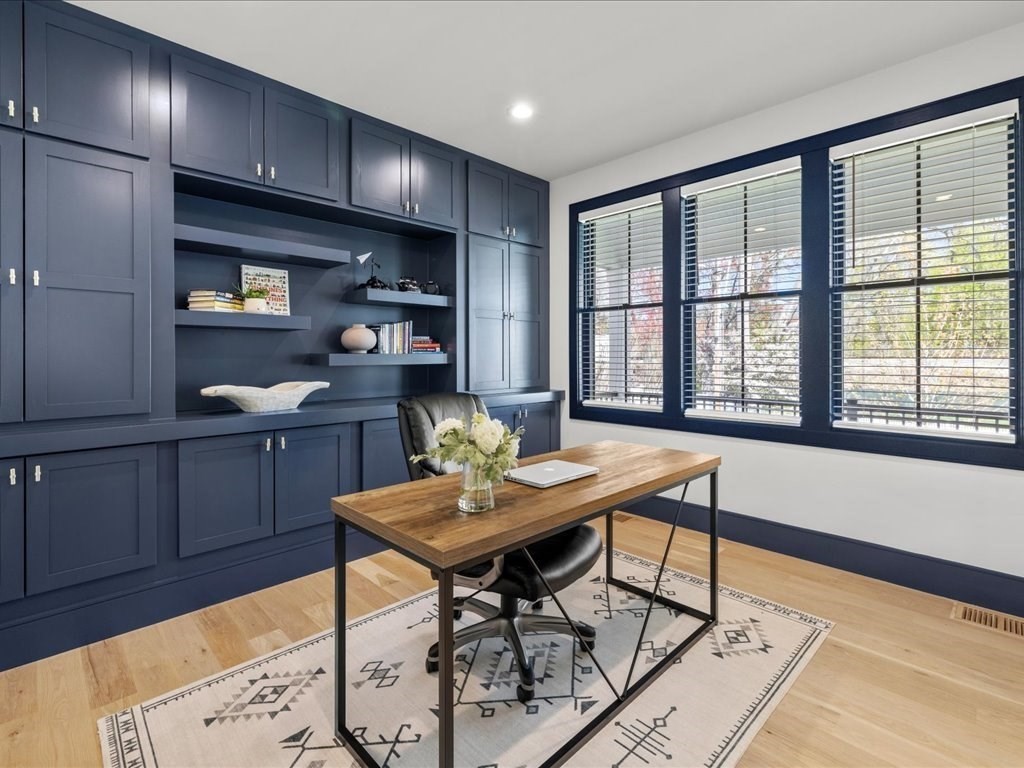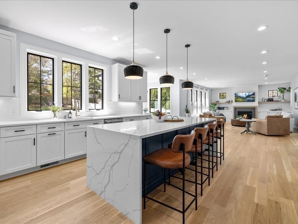 BEST Stress-free COMMUTER LOCATION, offering an exceptional blend of luxury, privacy & convenience. Better than new & set on a rare ½-acre level lot, this 2022 sun-filled home delivers over 6,000 sq ft of thoughtfully designed living space with refined finishes, custom built-ins & effortless indoor-outdoor flow. The rarely used chef’s kitchen features quartz counters, an oversized waterfall island, wine fridge, double ovens, gas cooking, walk-in pantry & pristine cabinetry all opening to a stunning fireplaced family room with gorgeous private views of yard. Enjoy formal dining, a grand home office & large mudroom with yard access. The spa-inspired primary suite offers two walk-in closets, lounge area & spa bath, three additional bedrooms, laundry are on the second floor. A third-floor bonus room, ensuite bedroom & storage. Finished lower level with game room, gym, 6th ensuite bedroom, complete this exceptional offering-Oversized garage, natural gas, sprinkler, alarm & close to town!