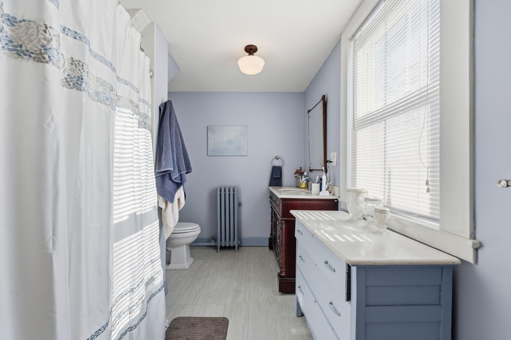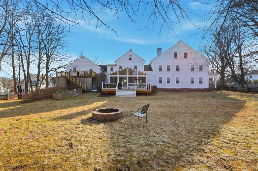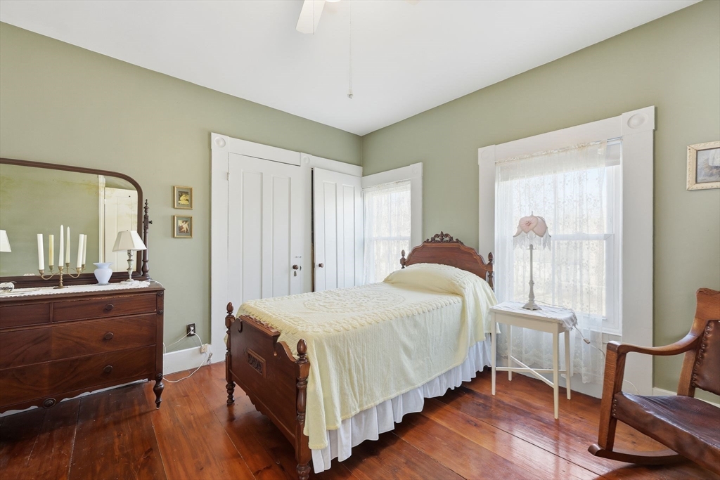 Known historically as the Julius C. Hurd House, this remarkable 1845 Colonial is one of Medway’s true legacy homes. Set back on 1.27 acres like a private estate, it offers over 4,600 sq ft where historic craftsmanship and modern updates come together seamlessly. The home features five bedrooms, four and a half baths, nine fireplaces, a gracious double parlor, original wide plank floors, and sun-filled living spaces that feel both grand and welcoming. Thoughtful improvements include a stunning primary suite added in 2016 with fireplace, walk in closet and laundry, along with a refreshed main kitchen in 2025. A private in law apartment with its own kitchen, bath and balcony provides exceptional flexibility for extended family or guests. An artist studio, wraparound porch, refinished floors, updated systems, new deck, mature landscaping, U shaped driveway and oversized two car garage complete this rare opportunity to own a meaningful piece of Medway’s history.
