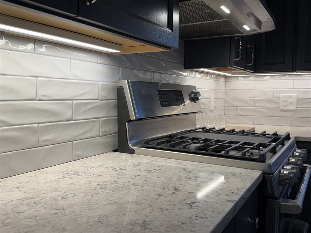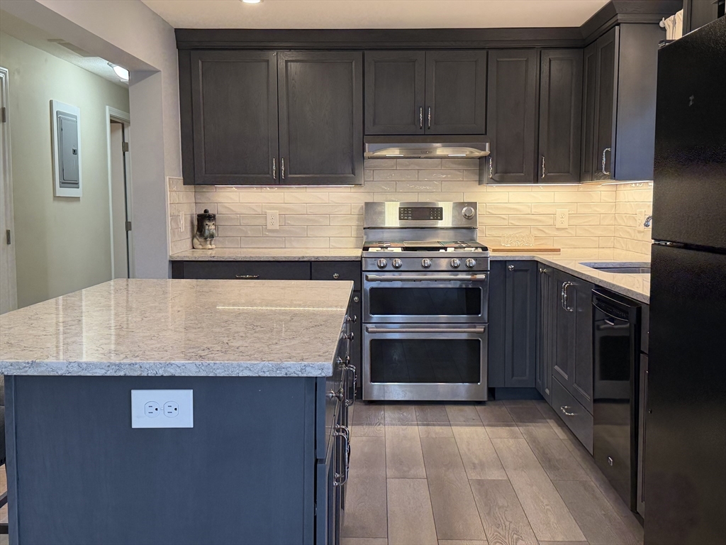 Come home to the quiet, set back Pleasant Hills area of Saugus,MA! This ranch is bustling with updates including a newly redone kitchen and bathroom: The kitchen features quartz countertops, an island w/matching quartz countertop, a stainless steel double oven, high end luxury vinyl flooring, and solid hickory cabinets with soft close doors and drawers. The bath features porcelain tiles, hickory cabinets, quartz countertop, and a multi head shower system. The heating system is a new, state of the art Navien Condensing Gas Boiler system and is only 2 years young, and don't forget the central AC! 3 years ago, a new roof was added, and last year new insulation was blown in throughout the home. All of the Harwood floors were refinished this week. Finished basement has a kitchenette, family room, 3/.4 bath, and a bed room, all with high end Dupont laminate flooring. There's a large lot of land (12,000+),with parking for 5, 2 driveways, and a large composite deck overlooking the back yard.