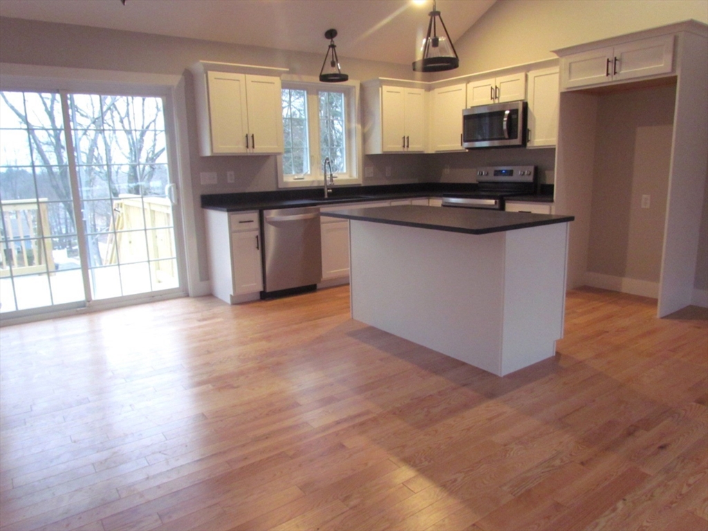 Beautiful NEW CONSTRUCTION ranch with 2-car garage under, now ready for occupancy! Lovely lot in this great family & well established neighborhood, yet convenient to all local amenities! Front farmers porch and 10 x 10 back deck to enjoy those relaxing & beautiful views! This stylish home has an open floorplan with vaulted ceiling in the kitchen & living room that seamlessly connects to the welcoming foyer. Gleaming hardwood floors in the living room, kitchen, hallway and master bedroom. Ceramic tile floors in both bathrooms. Central air for those hot summer days/nights. Gravel driveway, landscaping (loam & seed), city water & sewer. Daylight, walkout basement for future expansion purposes. Experience the exceptional craftsmanship and quality of your brand new home! Minutes away from Bailey Brook Park & Conservation Area, featuring pickle ball, disc golf, playground & walking trails. Also, Gardner's local swimming pool. Attached builders specs, warranty, service policy & plot plan.