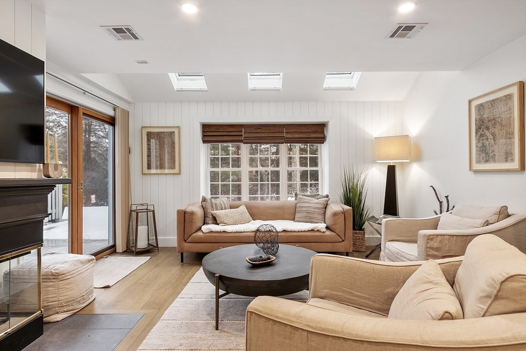 EXTRAORDINARY OPPORTUNITY at highly desirable "Ridgefield Condominiums"! This outstanding 2 BED/2.5 BATH Townhouse features quality updates and designer touches throughout. Architectural details, modern light fixtures, upgraded flooring and upscale finishes create an elevated feel to the well-designed "Oxford" style floorplan. The kitchen is equipped with stainless steel appliances, granite counters, pantry closet and slider to outdoor patio for easy grilling. The open living space offers a wood-burning fireplace, lots of natural light, vaulted ceiling w/skylights & private wooded view in back. The 2nd floor features a cozy sitting area, main bathroom w/2nd door to the guest bedroom, laundry closet, and king-size primary suite with skylit dressing area, closet wall and private bath. Central A/C. Attached Garage. Condo fee includes Comcast basic cable TV & internet! Complex offers pool, tennis/pickleball courts, basketball, community gardens, clubhouse & more. Commuter's Dream!
