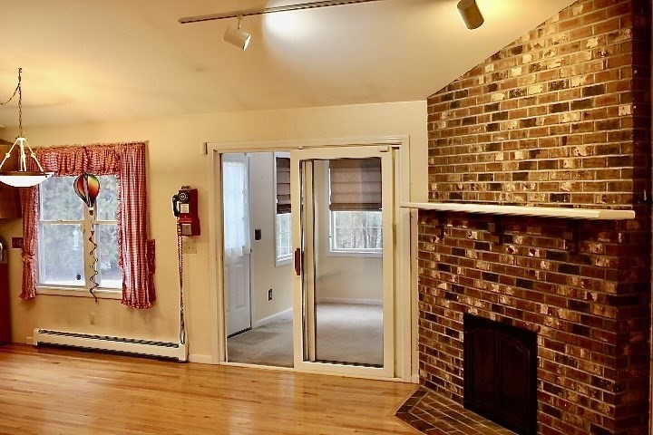 Located in a premier over-55 active adult community, this upgraded 3-bedroom, 2-bathroom ranch offers a unique blend of nostalgic charm and modern efficiency. Designed for effortless single-level living, the home features a spacious layout The living room features dramatic vaulted ceilings that create an airy, expansive feel, anchored by a cozy fireplace for warm evenings. There is also a retro-Inspired ktchen Relax in the cozy 3-season room, offering a tranquil, private space to enjoy views of the surrounding landscape in comfort. Gleaming hardwood floors flow throughout the main living Every bedroom and storage area has been maximized with professional, custom-organized closet systems for ultimate function