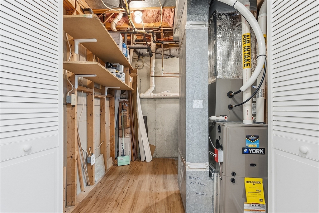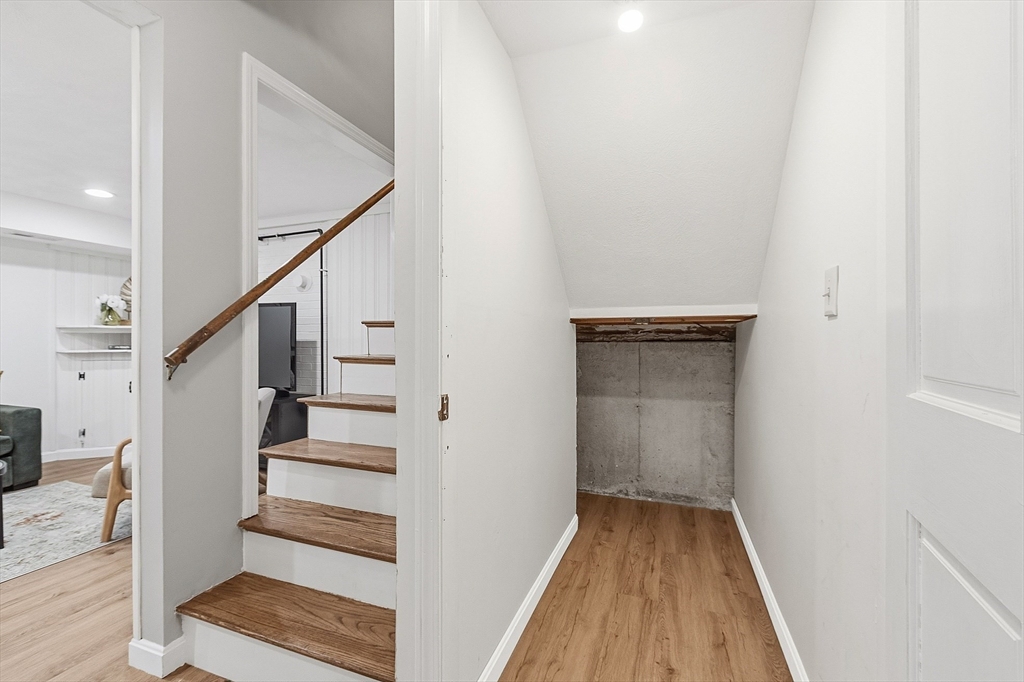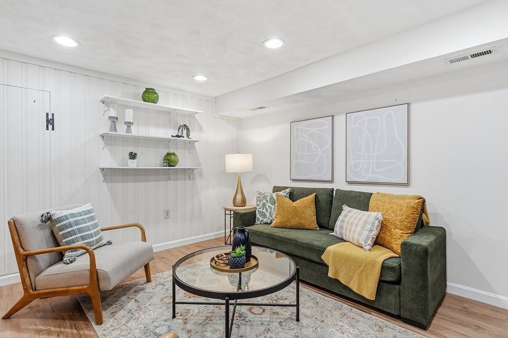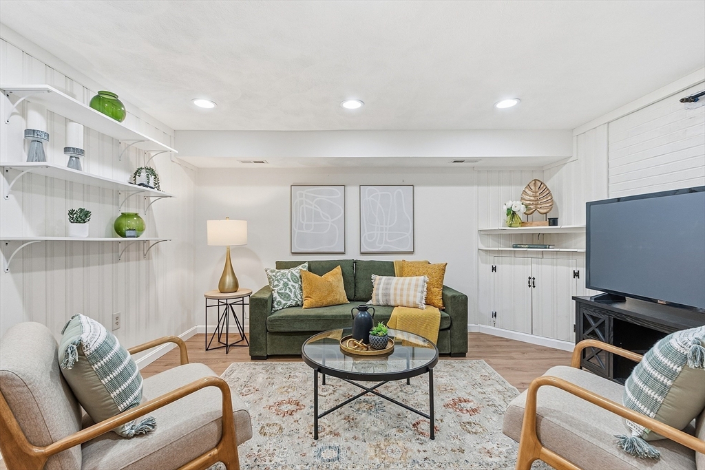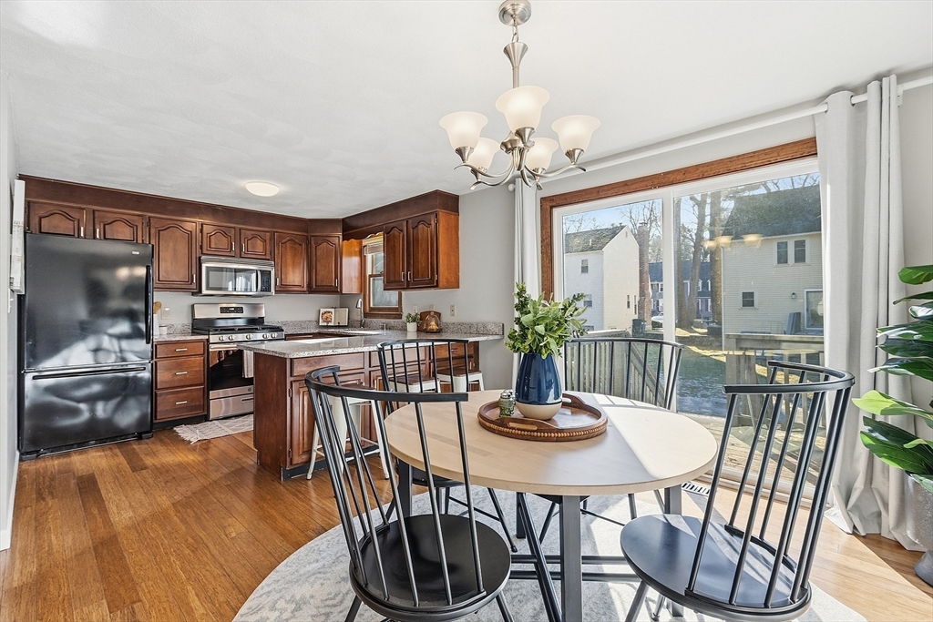 Northeast facing end-unit townhouse in the sought-after Williamsburg One community! When you arrive you will be greeted by a spacious and sun-filled living room with a gas fireplace and recessed lights. The open-concept floorplan leads into the dining room which offers an excellent spot to entertain and provides easy access to the rear deck for enjoying the nice weather. The kitchen has granite counters, lots of cabinet space, and a functional peninsula with seating and even more storage. The main floor is completed by the half bathroom. Upstairs you will find two large bedrooms and the full bathroom with laundry. The finished basement includes the family room, office, and several generous storage spaces. All of the mechanical systems have been updated, there is gas heating and cooking, central air, town water, sewer, and trash pick-up. The lovely Williamsburg community offers a pool, clubhouse, tennis courts, and easy access to multiple highways as well as tax free shopping in Nashua.