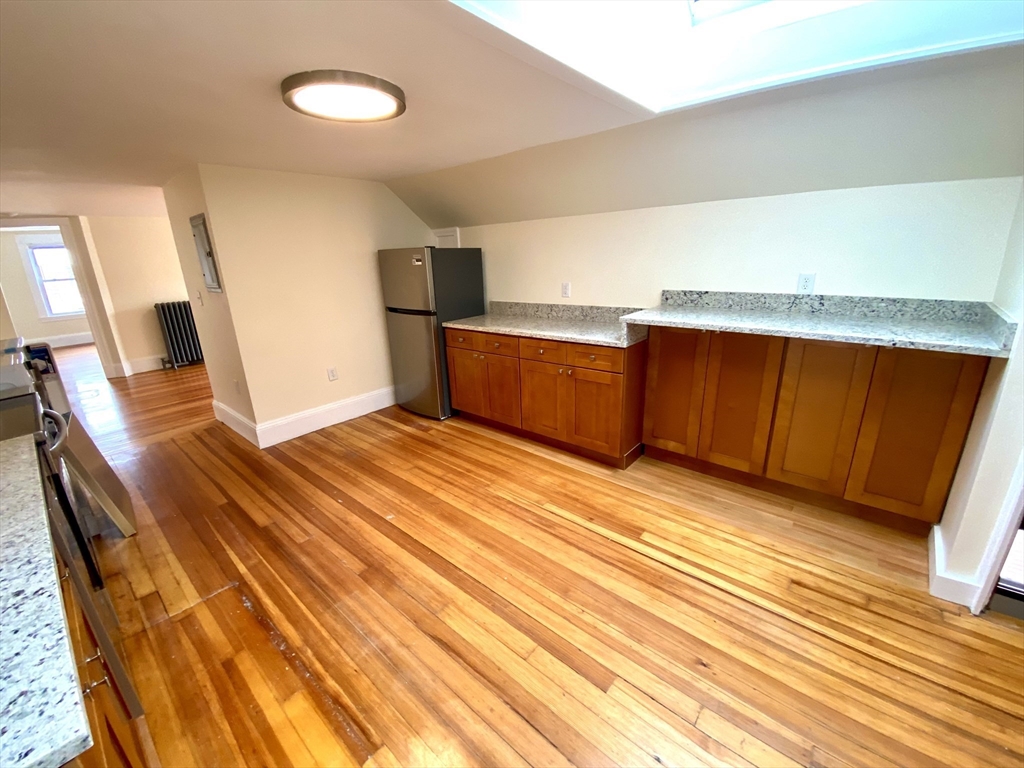 **APRIL 1 LEASE START & ONLY $3250 DUE**Renovated 3rd floor 2 bed 1 bath in 3 family house (not owner occupied) in the wonderful Oakley Country Club neighborhood. Ceiling height is 7 feet. 1 bedrm is on the smaller side. PET FRIENDLY LANDLORD. The space was renovated 3 years ago. Updated, sky-lit eat-in kitchen w/ GRANITE counters, STAINLESS appliances (electric stove, dishwasher & fridge). WASHER & DRYER IN-UNIT. Hardwood flooring throughout. There is additional private space w/ this apartment at the 2nd floor level of the house which includes the main entry, ideal for a home office space & a 3 season sunroom/porch. Utilities are not included (gas heating, electric). Tenants maintain own snow removal. Small backyard for shared use. Parking for 1 included (2 possible). Great location close to shops, restaurants, convenience stores, MBTA service between CRail (Waverley Sq) & Harvard Sq (Bus #73). Easy access to Cambridge & Belmont. Photos/video tour are from prior to current tenants.