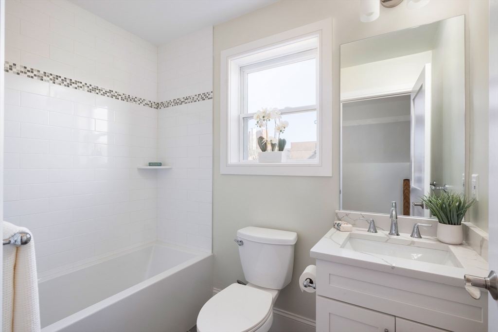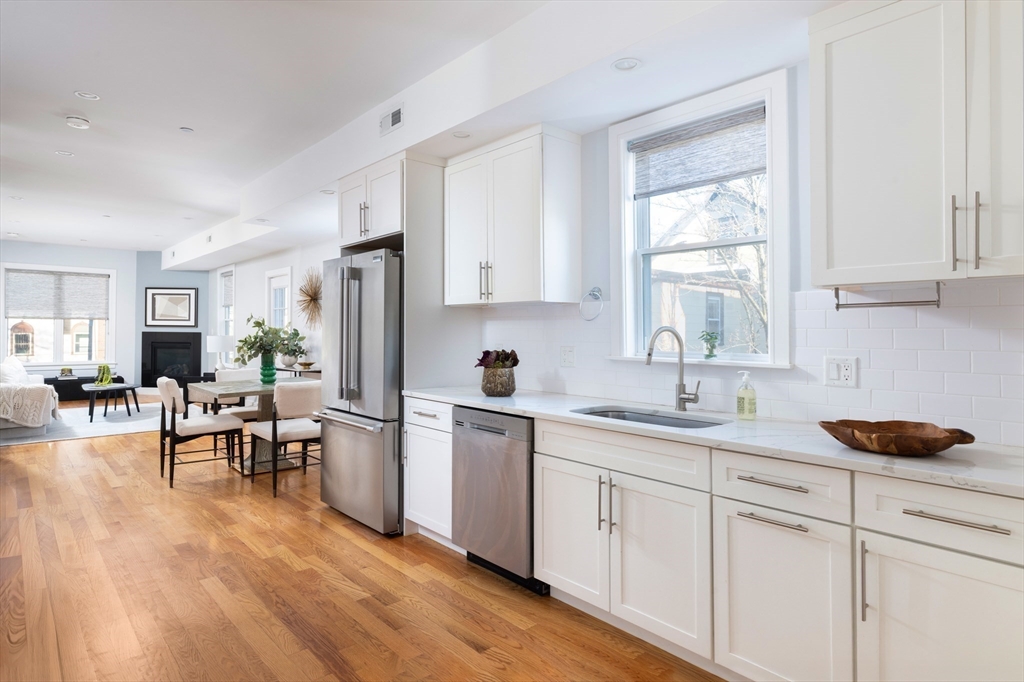 Urban living meets modern style in this renovated Jamaica Plain 2 bed, 2.5 bath home. On cold winter days this warm & inviting home is a retreat filled with sunlight & the warm glow of the fireplace. The open layout features a living & dining area, flowing seamlessly into a spacious contemporary kitchen equipped with stylish stone countertops, stainless steel appliances, a pantry, & abundant cabinets. A well-designed duplex with 2 bedrooms & 2 full baths, including a dedicated ensuite with a spa-like glass shower upstairs. Designed for comfort & convenience, this home features AC, in-unit laundry, & plenty of closets.. 2 private decks are perfect for morning coffee & evening relaxation.. Nestled in the heart of JP's coveted Brewery District, enjoy local favorites: The Haven, Sam Adams Brewery & more. With the Green St & Stony Brook T just moments away, commuting to Boston is easy. Experience the best of JP at Jamaica Pond, Arnold Arboretum, & the vibrant shops & dining on Centre St.