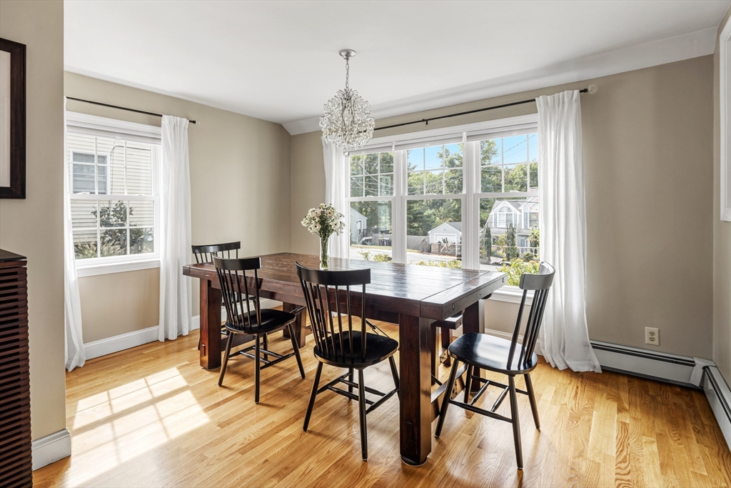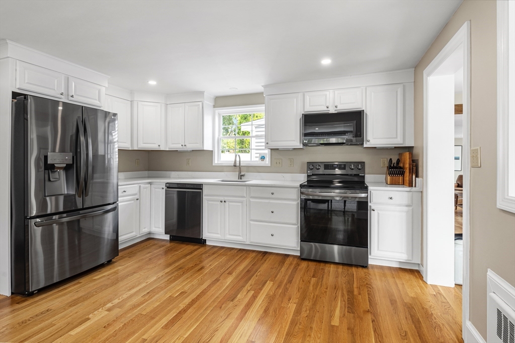 Move-in ready, 1,915 SF, 3 bed, 2 bath home with home office or option for a fourth bedroom, abundance of natural light, fireplace, covered outdoor entertaining space, private and fenced-in backyard, ample basement storage and extensive upgrades throughout. Improvements include new roof, all new windows and vinyl siding (2021), new and expanded asphalt driveway and fully enclosed backyard with vinyl fencing (2022), new kitchen countertops, all new stainless steel appliances, new and refinished hardwood flooring, new recessed lighting, new tankless boiler and hot water heater (2024), new tiled first-floor bath shower with niche (2025), new hardscape featuring a back paver walkway and much more. Minutes to the East Weymouth commuter rail, I-93, Route 3A, Hingham Shipyard commuter ferry, Derby Street Shops and nearby parks and playgrounds.