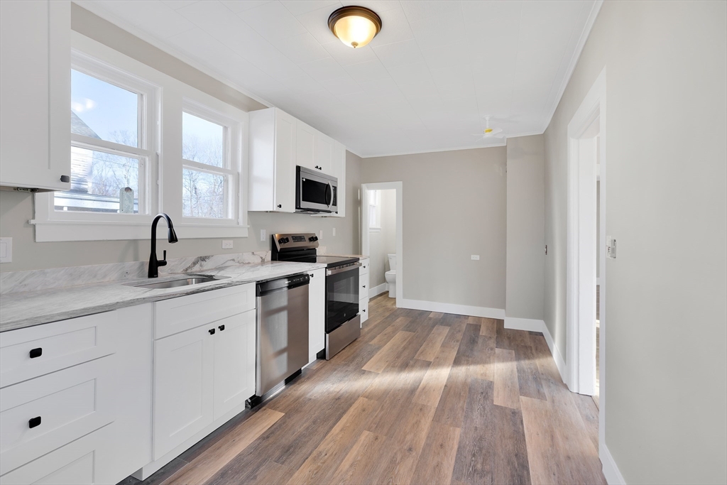 Updated and ready for new owners. This 3 bedroom, 1.5 bath home is close to all that Monson has to offer. Some of the updates include Kitchen, bathroom and water heater. Beautifully refinished hard wood floor throughout living room and bedrooms. Enjoy your front porch on those warmer mornings and evenings. There is also a 2 car detached garage. Small patio off the back door leading to a nice yard. Great opportunity to own in Monson. Easy to show.