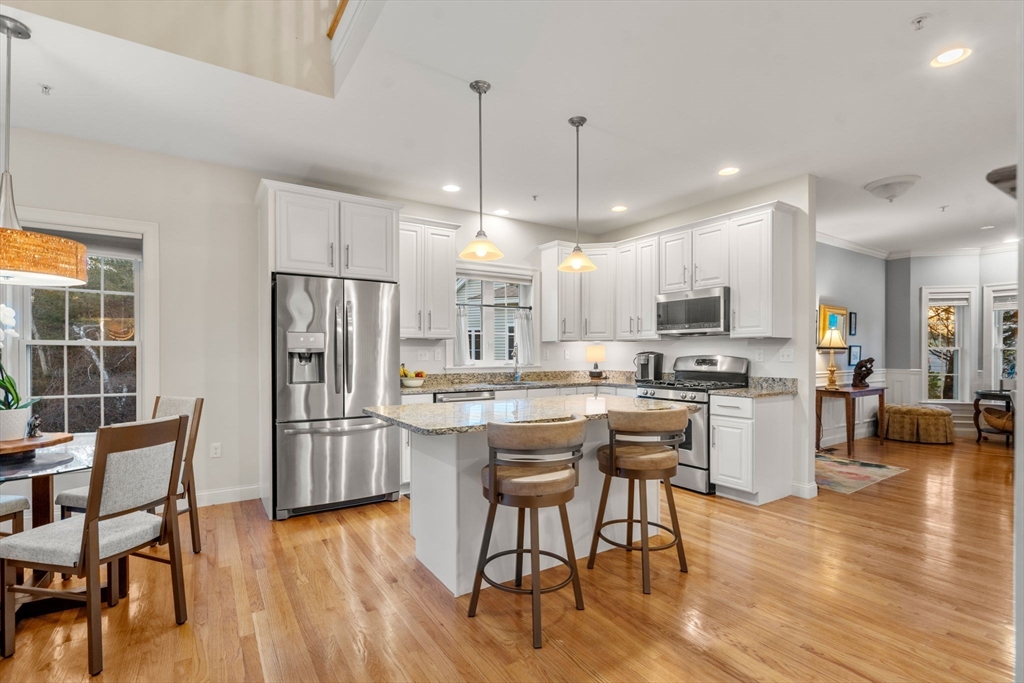 Nestled at The Orchards, in the charming town of Holliston, this inviting 2011 townhouse provides an elegant, serene living experience catering to a modern lifestyle. Within the thoughtfully designed condominium, you will discover a light-filled, open floor plan, cathedral ceiling, cozy gas fireplace, French doors, walk out lower level, picture windows, skylights, hardwood floors throughout the entertaining areas, stunning granite & stainless kitchen, versatile dining & office spaces, with lovely window & molding detail. The two bedrooms suites, I on each level, offer personal space & peaceful retreats, perfect for relaxation & rejuvenation. The expansive 2,161 square feet of living area provides a generous environment for both entertaining & everyday living. This home also features the convenience of 2 garage spaces, providing secure & sheltered parking. Laundry & powderoom are on the 1stt floor, the 2nd floor also has a loft & large bonus room- wonderful options.Lovely!