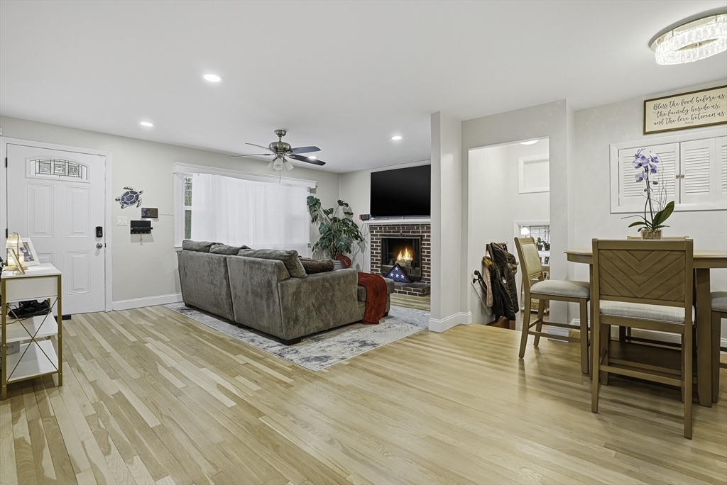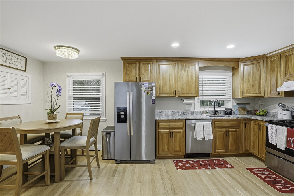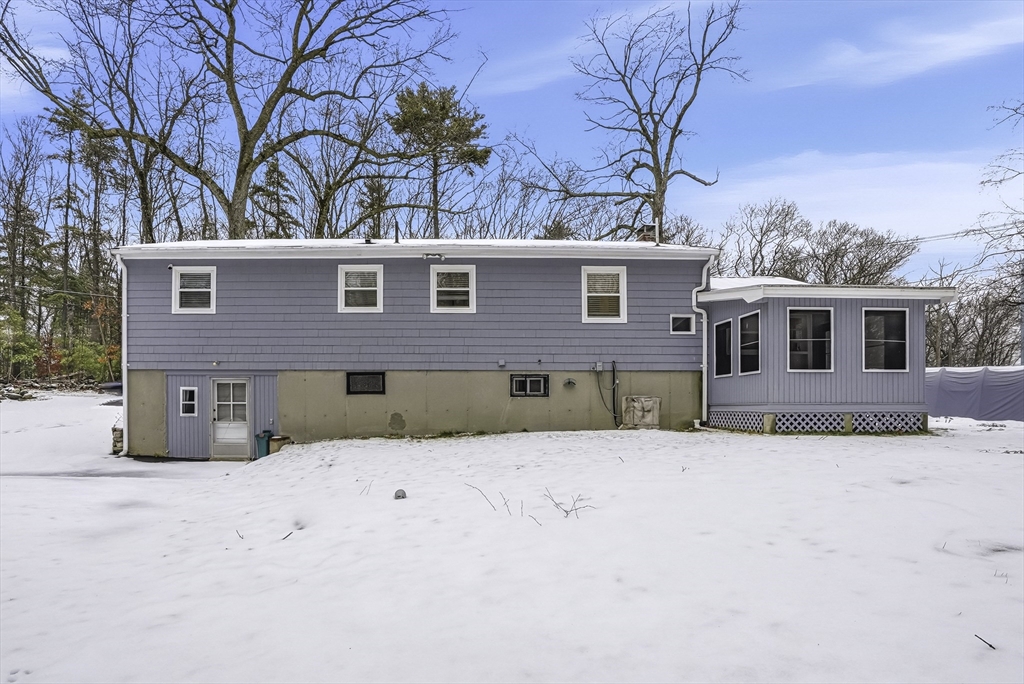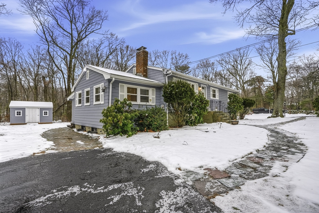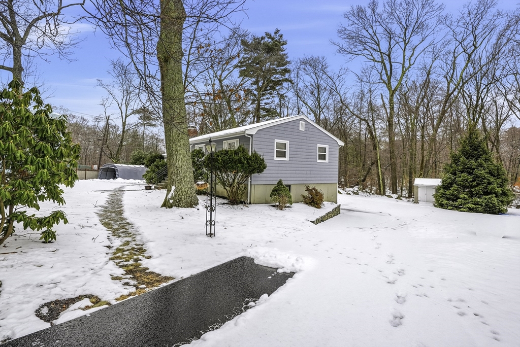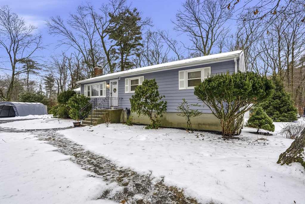 This lovely Ranch sits on a private, half-acre lot with two separate driveways. This is a very well maintained home. Features include a living room with fireplace ,hardwood floors throughout, newer kitchen cabinets with granite countertops, and stainless steel appliances .There is additional space next to the kitchen that can be use as a formal dinning room or office. Spacious basement with lots of potential to expand ,workshop area and laundry area, A screened-in porch offers views to a private outdoor retreat. The home features modern amenities like architectural shingles, energy-efficient windows, and central air conditioning, along with a new tub (2017), new driveway (2021), exterior paint (2024), and a new AC system (2020).Very easy access to major Highway ,very close to Commuter rail ,shopping area and restaurants.