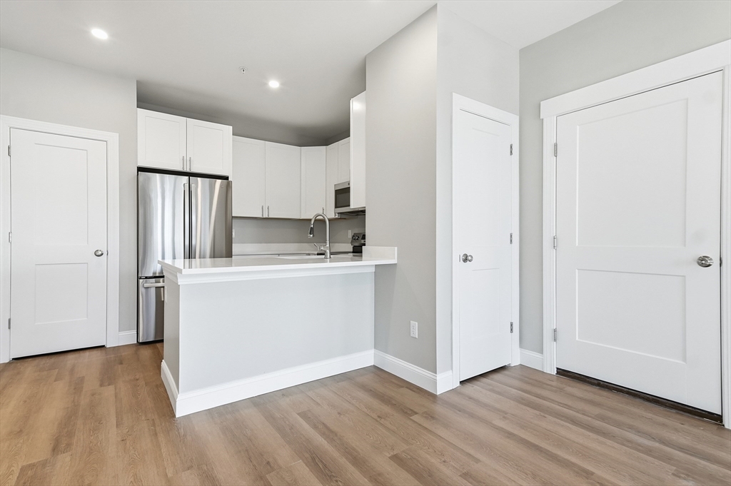 Brand new construction at "The Residences at 8 Vine Street," a six-unit boutique condo complex in Haverhill. This thoughtfully designed 1-bedroom, 1-bath condo offers modern finishes and low-maintenance living. The open-concept layout features granite countertops and stainless steel appliances, ideal for everyday living and entertaining. The spacious bedroom includes a large walk-in closet with in-unit washer and dryer hookups. Enjoy a private outdoor space with a covered deck, perfect for relaxing or entertaining. Additional highlights include one off-street parking space and dedicated basement storage. Conveniently located near downtown Haverhill, shopping, dining, and commuter rail access, this is a great opportunity to own a brand-new condo in a well-located, newly constructed building. With efficient design and quality finishes throughout, this unit offers both comfort and long-term value. A perfect option for buyers seeking modern construction, in a convenient location.