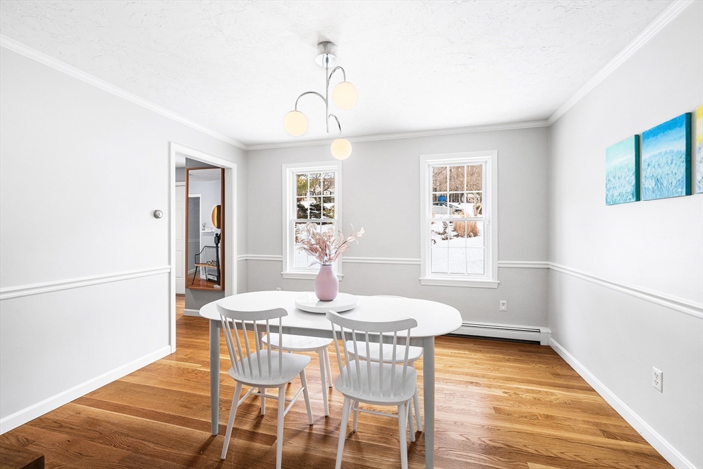 Beautifully maintained home featuring gleaming hardwood floors and two cozy fireplaces. The cathedral-ceiling family room offers a bright and open layout ideal for everyday living and entertaining. Includes a formal dining room and a private office. Fully renovated and modernized kitchen and bathrooms with stylish finishes and contemporary functionality. Large windows throughout the home provide abundant natural light and a strong connection to nature with scenic four-season views. Finished walkout basement offers flexible additional living space. Set on a generous lot with an expansive backyard, peaceful babbling brook, and mature trees. Additional highlights include a young roof, ample parking, and a quiet neighborhood setting.